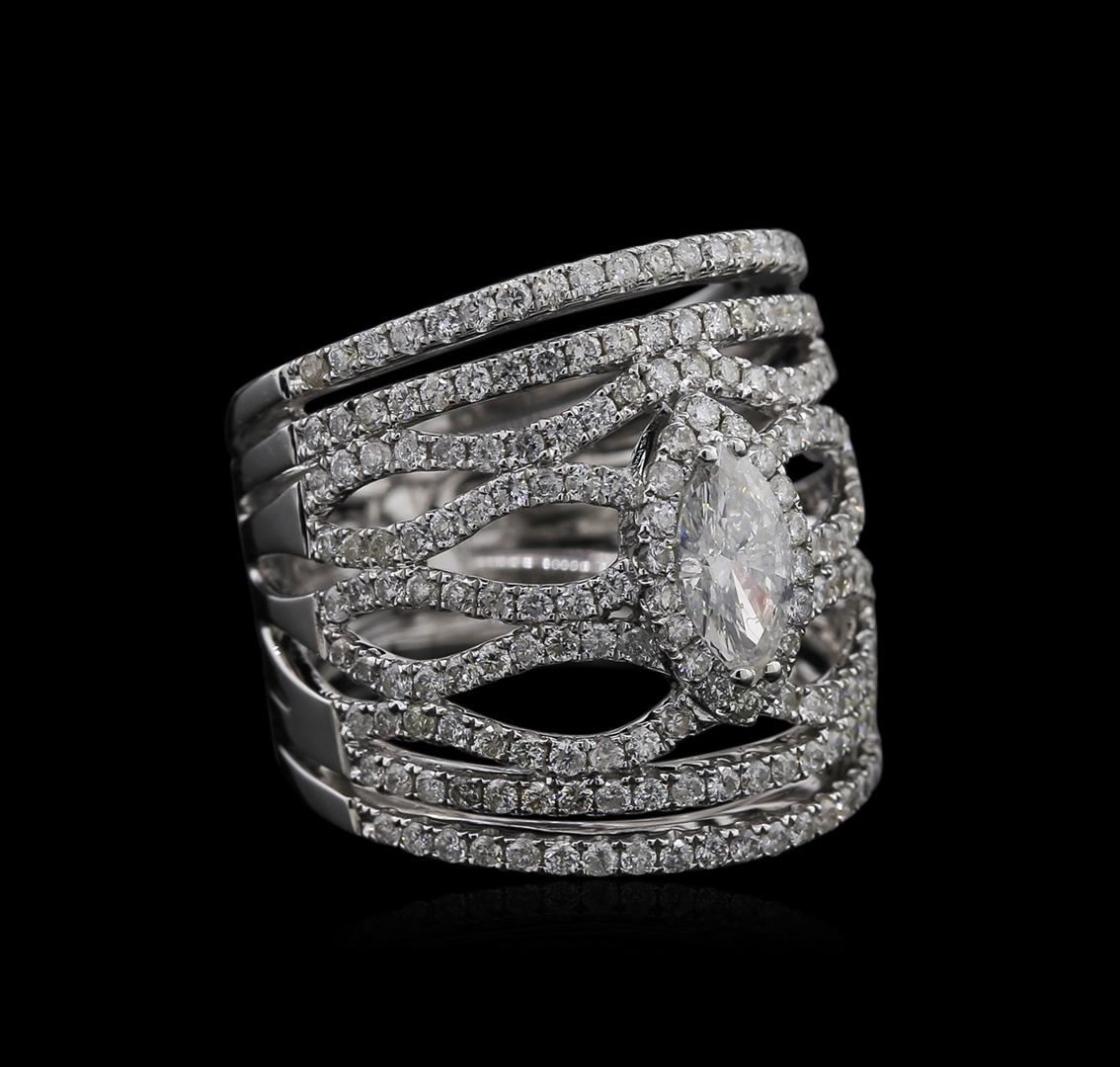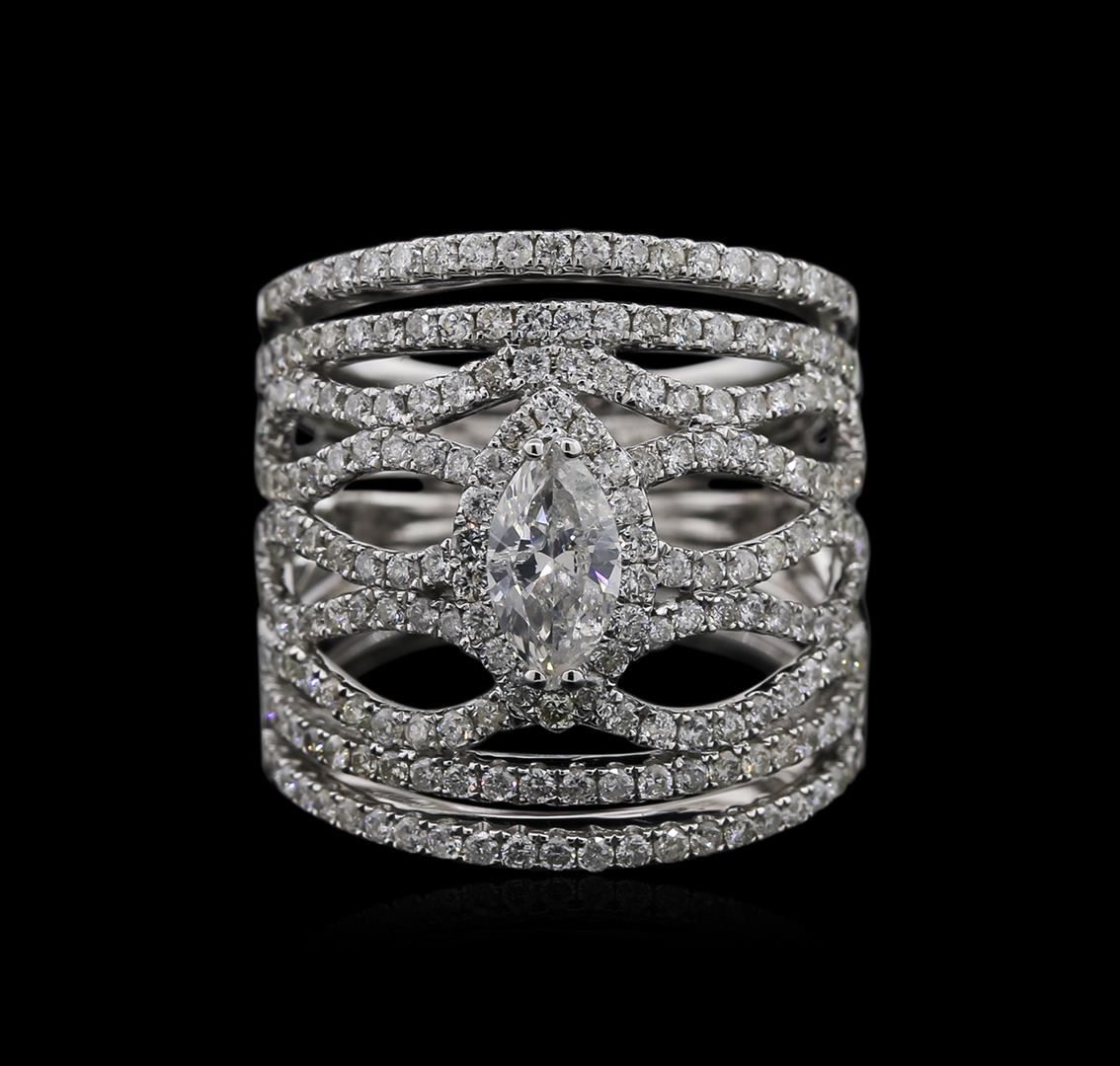 One ring featuring: 14KT white gold weighing 10.85 grams containing one diamond with a total weight of 0.59ct and side diamonds with a total weight of 1.68ct.