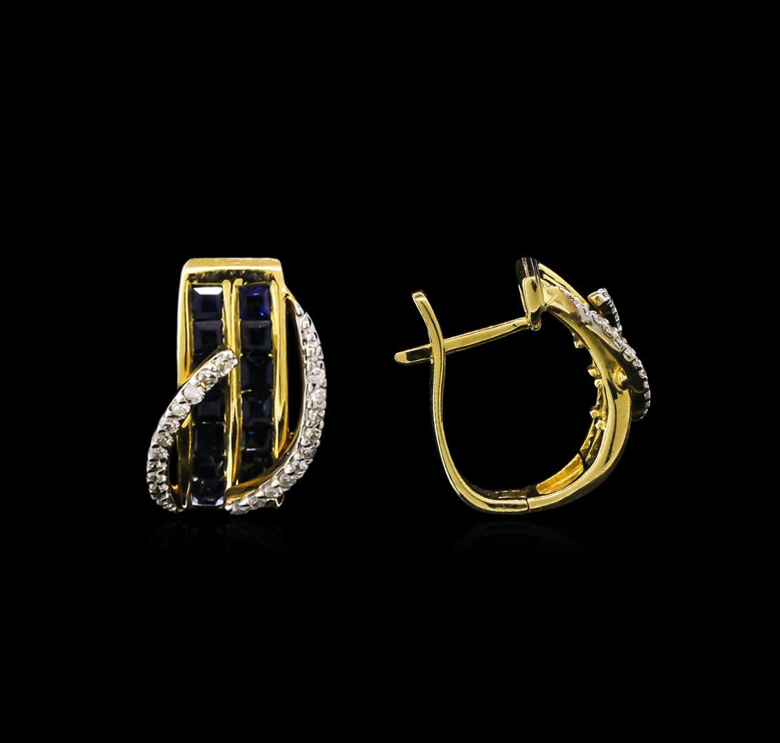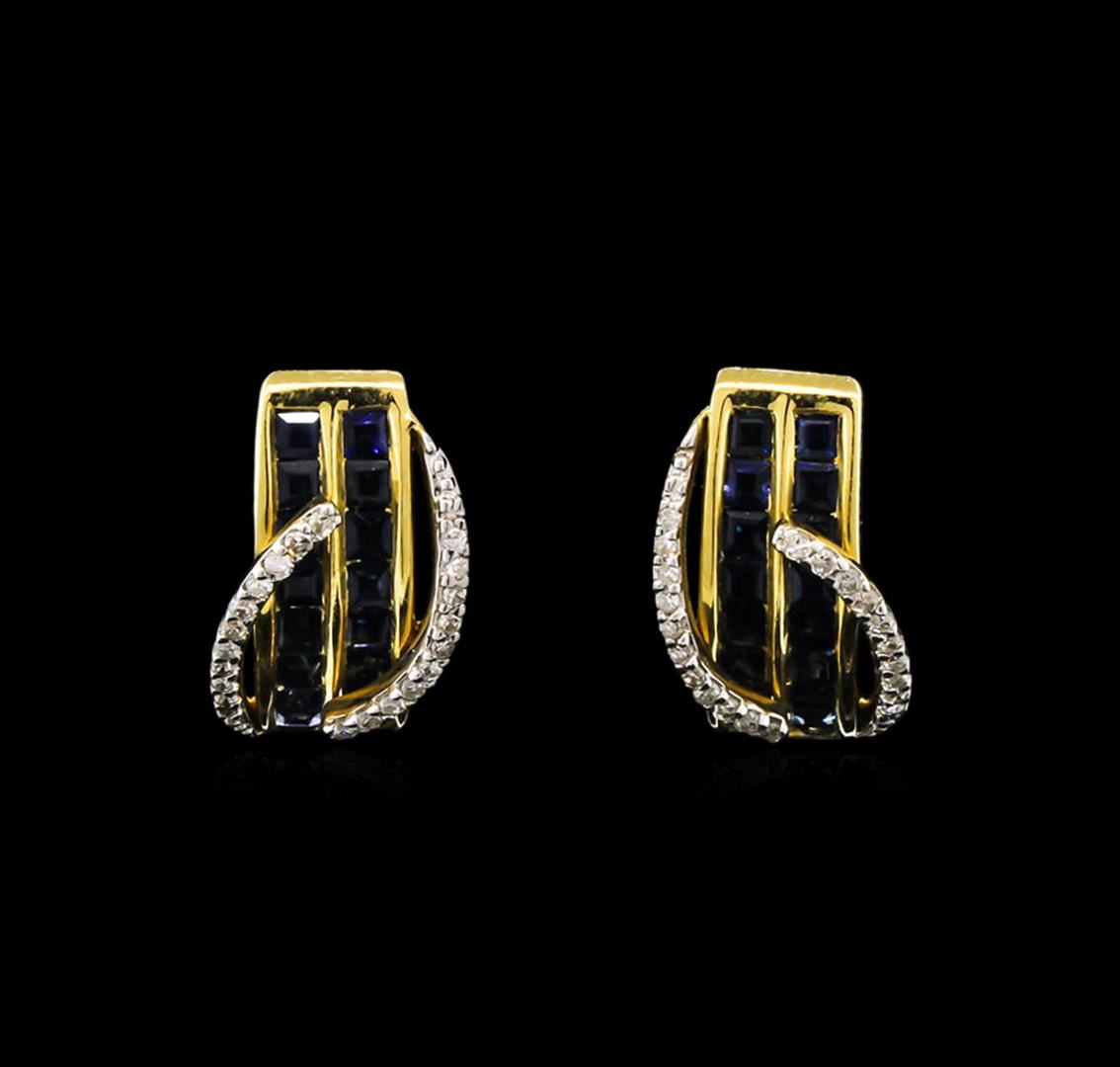 One pair of earrings featuring: 14KT yellow gold weighing 5.38 grams containing blue sapphires with a total weight of 2.27ct and diamonds with a total weight of 0.23ct.