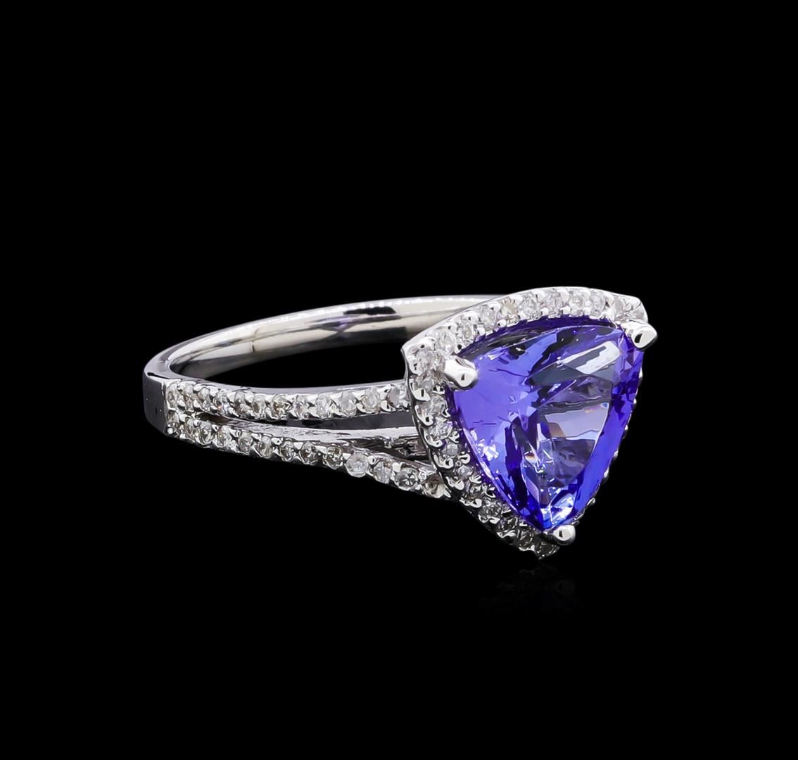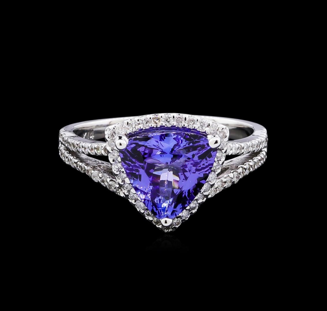One ring featuring: 14KT white gold weighing 3.47 grams containing one tanzanite with a total weight of 2.28ct and side diamonds with a total weight of 0.40ct.