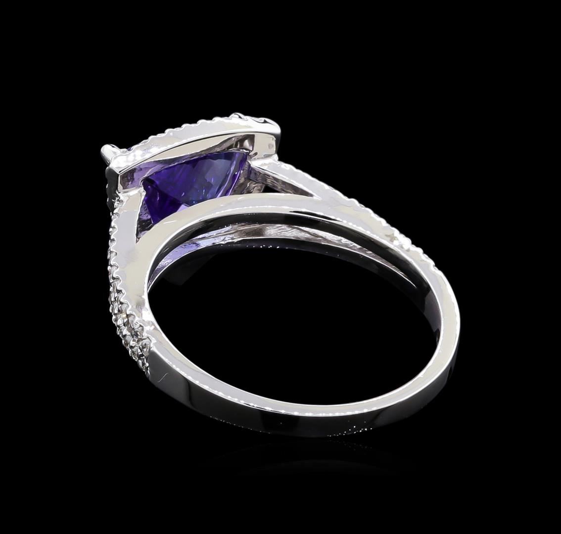 One ring featuring: 14KT white gold weighing 3.47 grams containing one tanzanite with a total weight of 2.28ct and side diamonds with a total weight of 0.40ct.