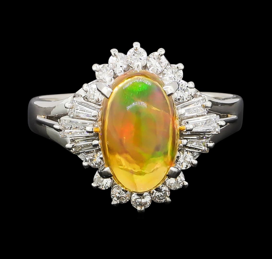 One ring featuring: Platinum containing Mexican Opal with a total weight of 2.30ct and Diamonds with a total weight of 0.43ct. Total Weight of Ring: 6 grams.