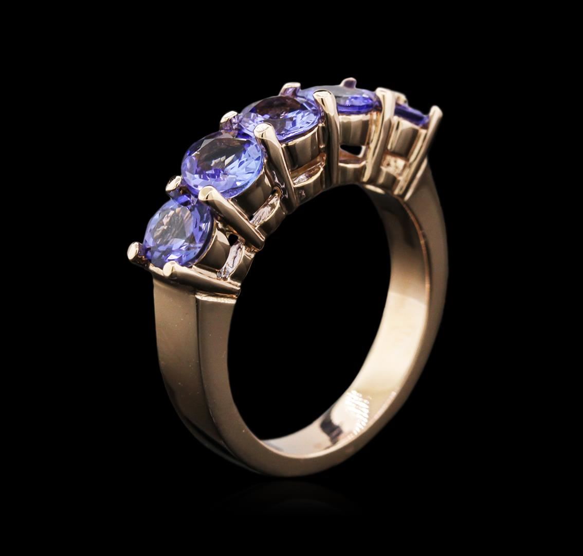 One ring featuring: 14KT rose gold weighing 6.18 grams containing 5 tanzanites with a total weight of 2.30ct.