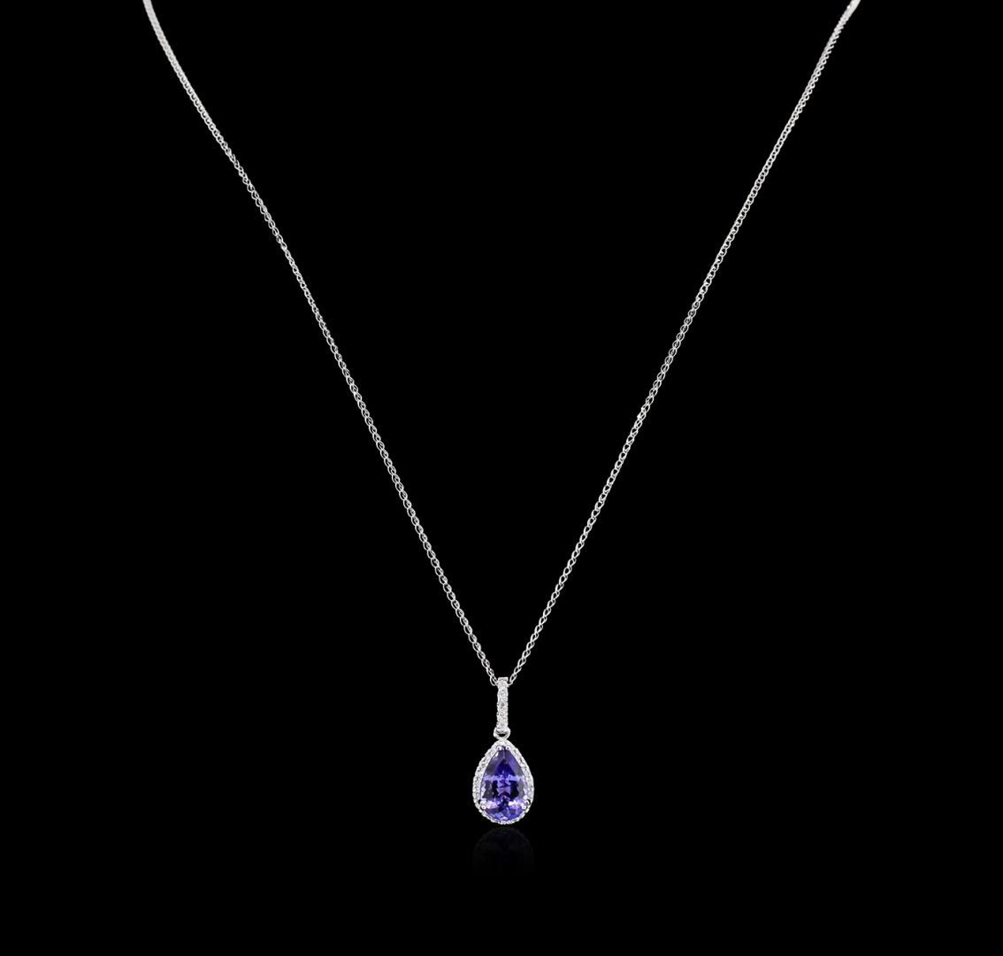 One pendant with chain featuring: 14KT white gold weighing 1.71 grams containing one tanzanite with a total weight of 2.30ct and 26 diamonds with a total weight of 0.14ct.
