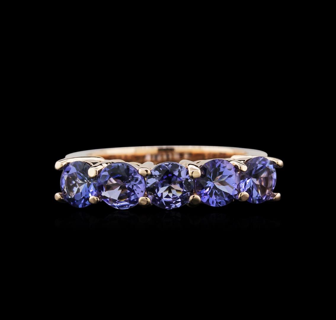 One ring featuring: 14KT rose gold weighing 6.18 grams containing 5 tanzanites with a total weight of 2.30ct.