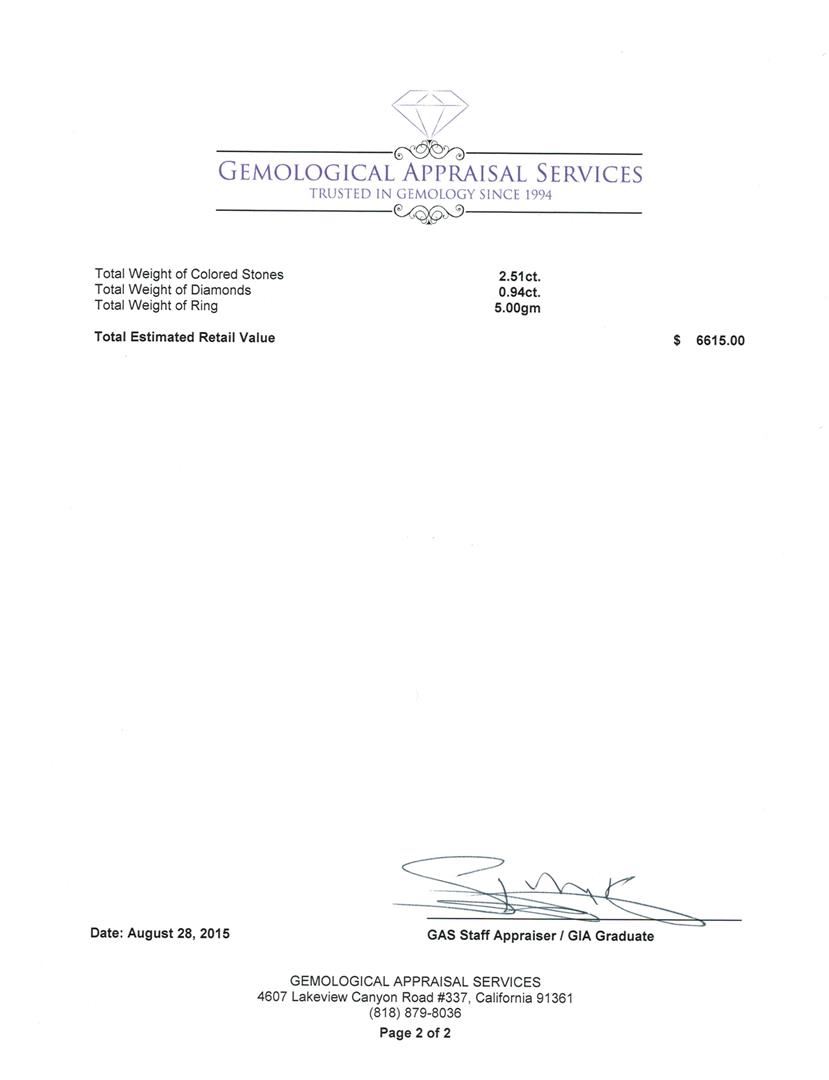 Not all Jewelry, watches or loose stones are appraised and the appraisals are provided for bidders only in certain instances at the discretion of SAA. Our appraisals are conducted by independent third-party appraisal firms. Such firms may be certified GIA Gemologists or have education in the industry or alternative certifications. Appraisals should be used for verification of gemstone and/or metal weight, size, and grade only, not actual value for resale or insurance purposes. Appraisal value should be not considered for actual value, as price varies greatly from retail locations and other merchants in different geographic locations. All Items auctioned by SAA should not be purchased with a view or expectation toward resale for appraisal price given, or to make a profit. The ultimate value for which an item can be resold may vary drastically from the appraisals listed by SAA.