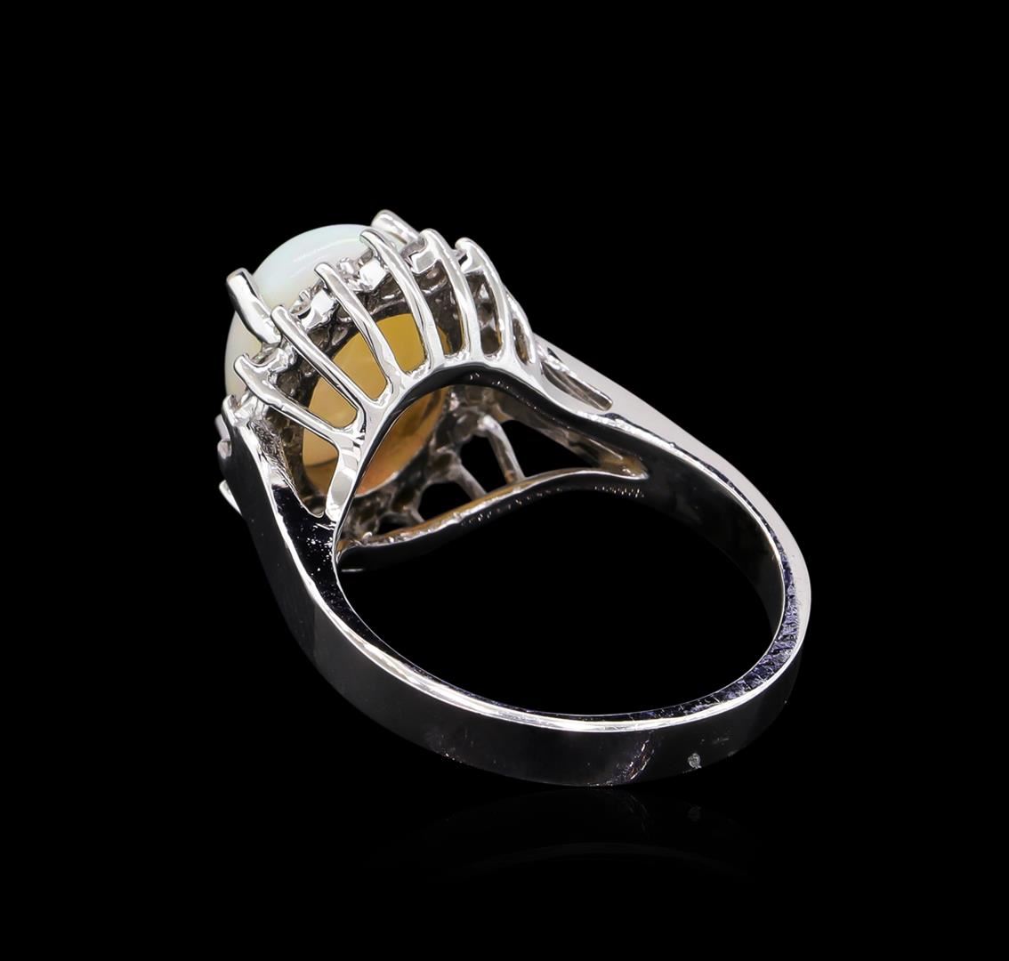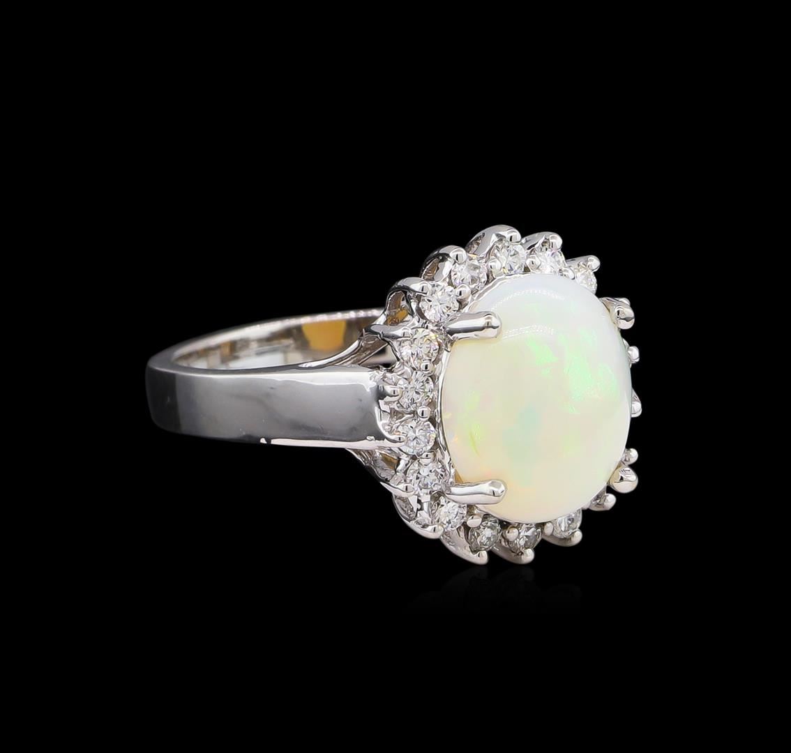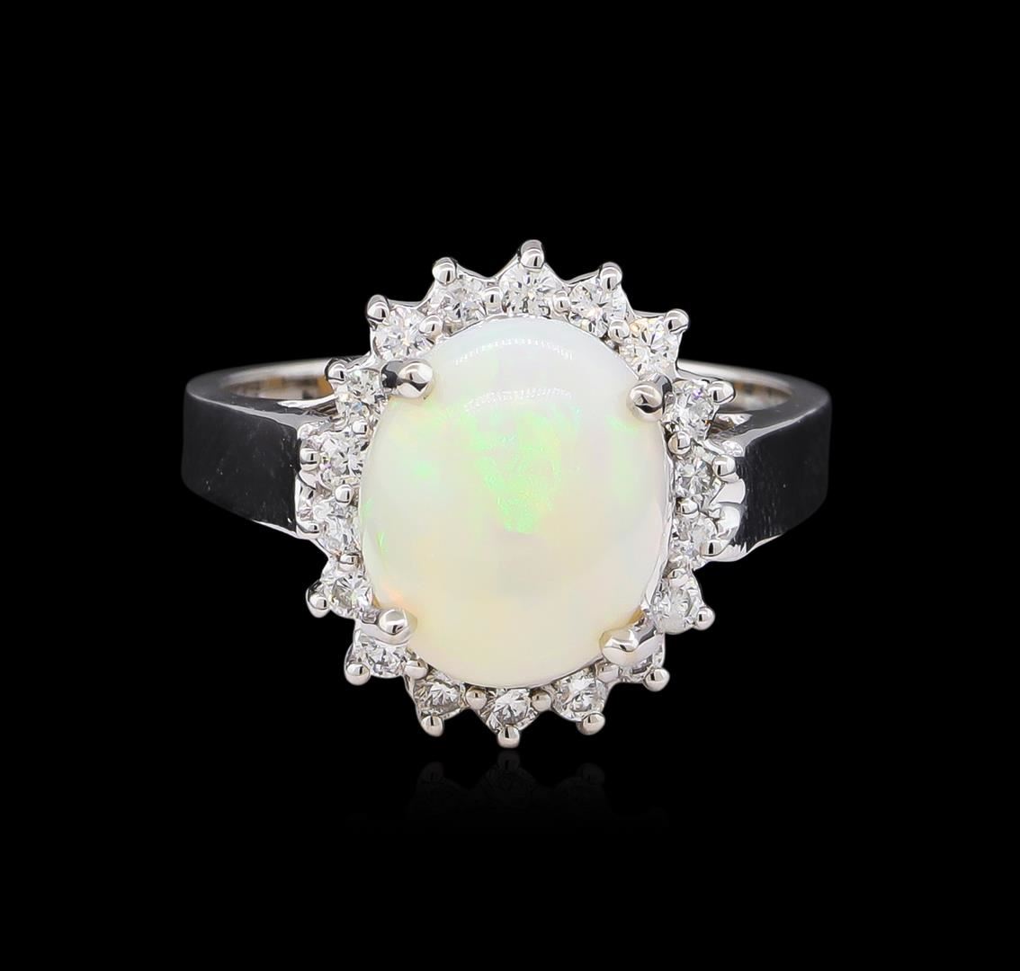 One ring featuring: 14KT white gold weighing 5.25 grams containing one opal with a total weight of 2.31ct and side diamonds with a total weight of 0.40ct.