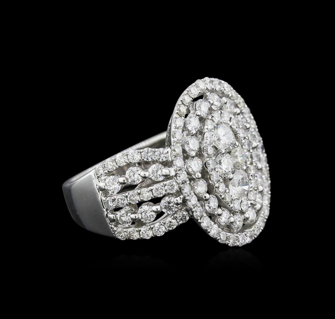 One electronically tested 18KT white gold ladies cast diamond ring with a bright polish finish. Identified with markings of "18K". Condition is new. Containing: Two prong set round brilliant cut diamonds, measuring 3.50 - 3.50 x 2.10mm (depth est.) approximate total weight of 2 Stones = 0.31ct. Clarity: SI-1 to SI-2. Color: F - G, Cut is Good. One Hundred Thirty-Two prong set round brilliant cut diamonds, measuring 1.90 - 1.30 x 0.96mm (depth est.) approximate total weight of 132 Stones = 2.01ct. Clarity: SI-1 to I-1. Color: G - H, Cut is Good. Diamonds are graded in the mounting, unless otherwise stated. Total Weight of Diamonds 2.32ct. Total Weight of Ring 7.90gm. GGL Appraised at $5,950.00.