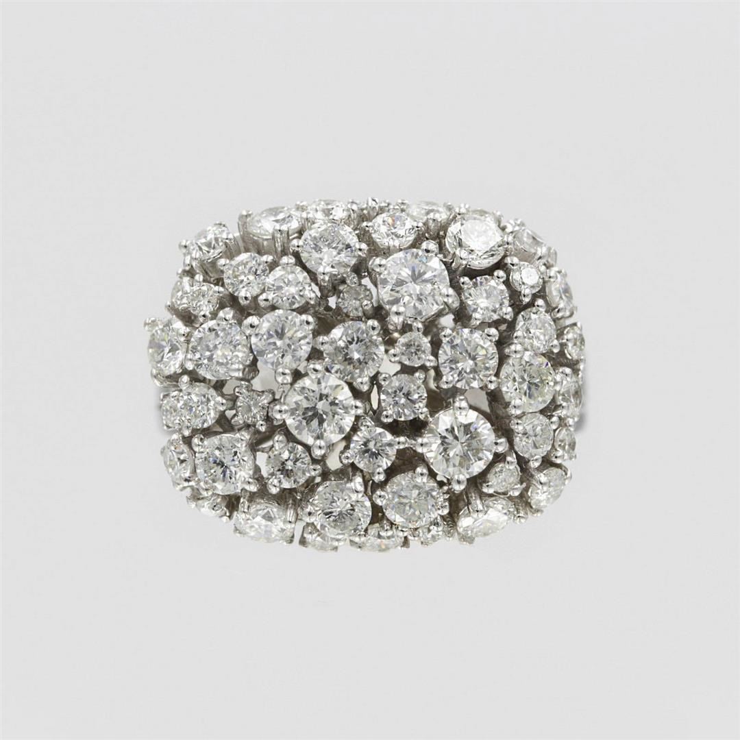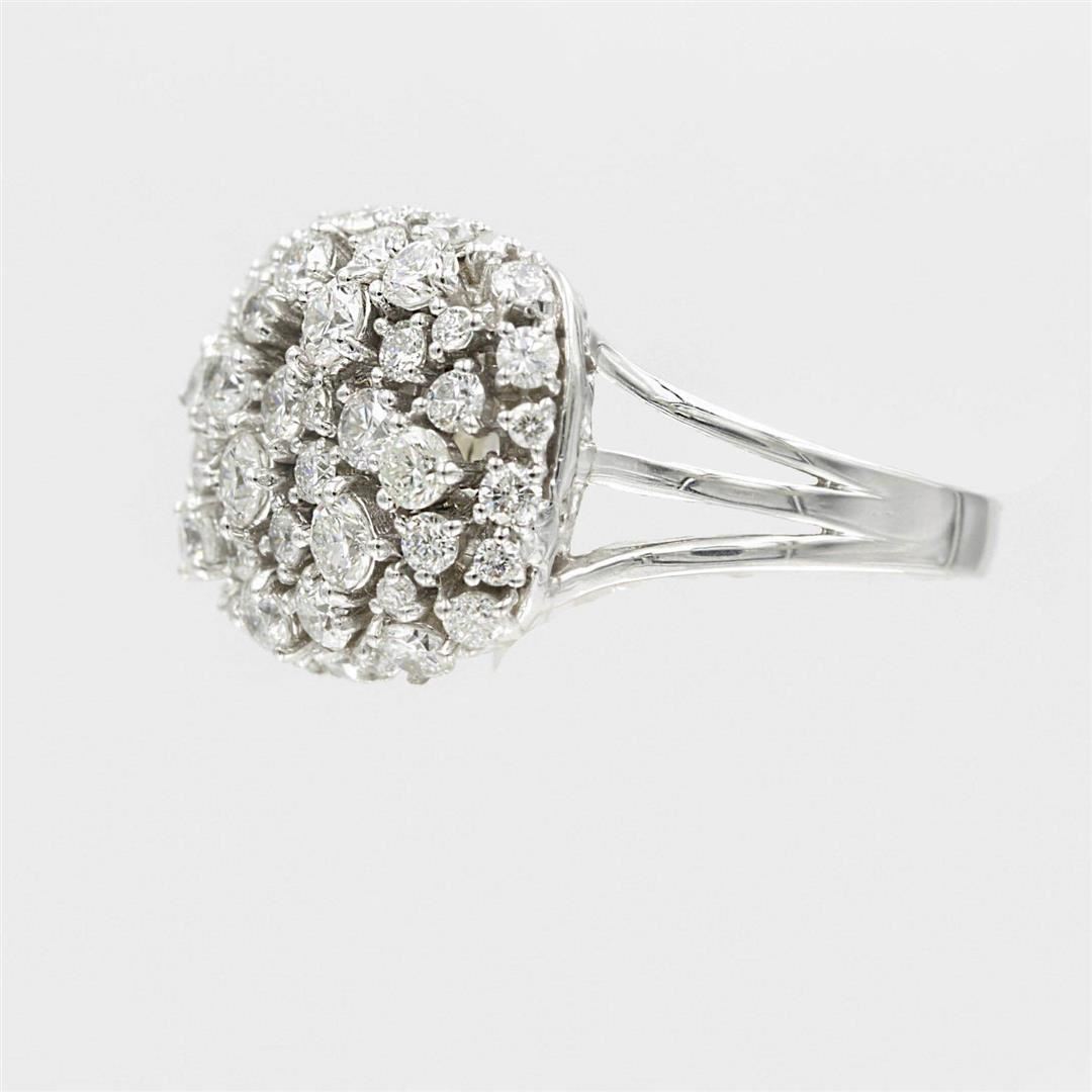 One ring featuring: 14KT white gold weighing 8.48 grams containing 53 diamonds weighing 2.33ctw. The diamonds are round brilliant cut and are natural, unenhanced stones with G color, SI1-SI2 clarity and excellent cut. The ring is a size 6.5 but can be res