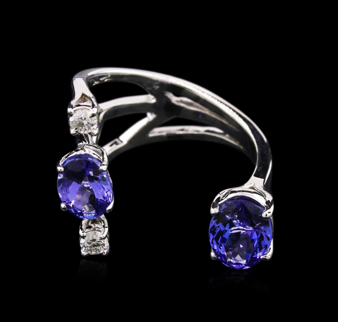 One ring featuring: 14KT white gold weighing 4.20 grams containing two tanzanites with a total weight of 2.34ct and two diamonds with a total weight of 0.15ct.