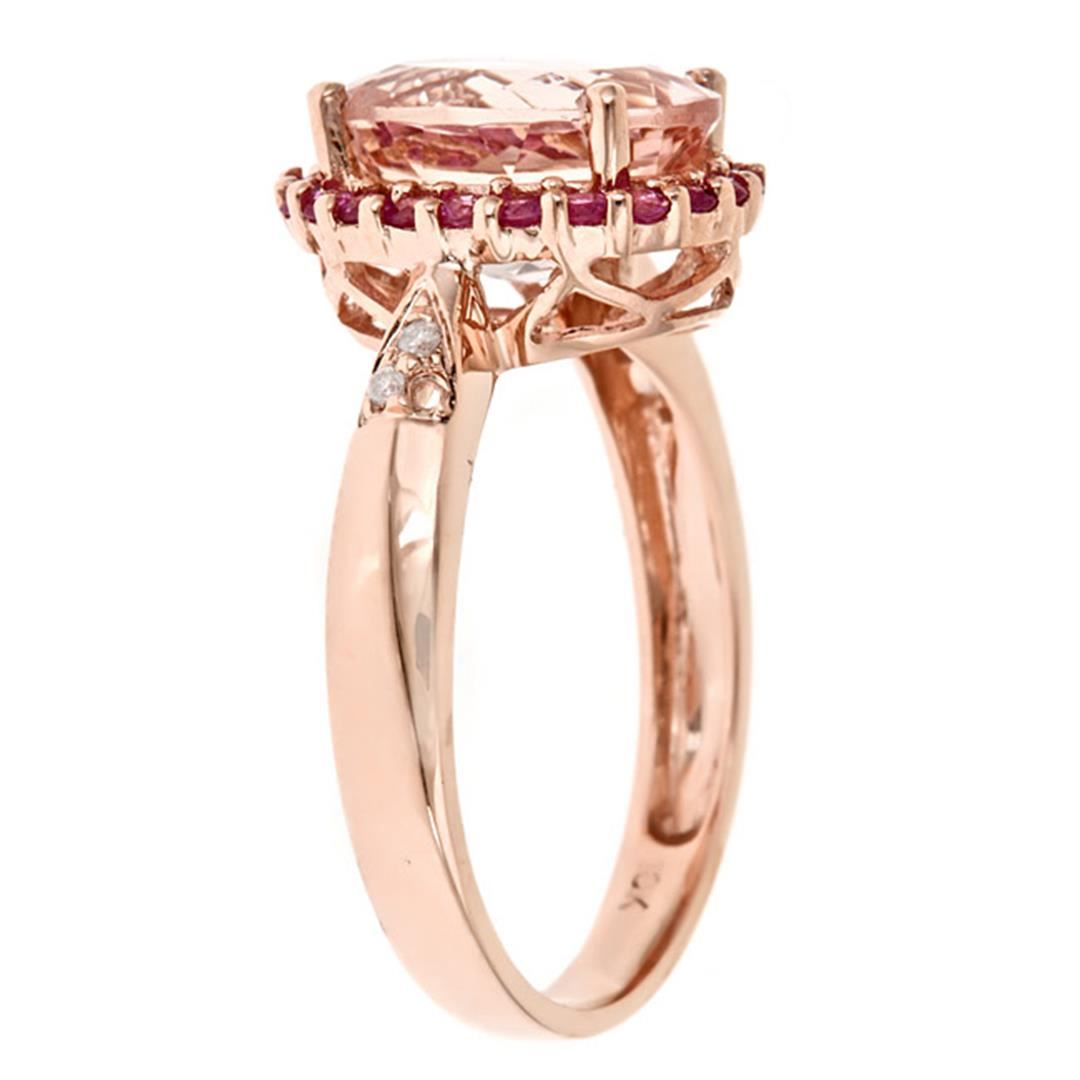 One Ring featuring: 10KT Rose Gold weighing 2.3 grams containing Morganite with an approximate weight of 2.35ct, Pink Sapphire with an approximate weight of 0.28ct, and Diamond with an approximate weight of 0.03ct.