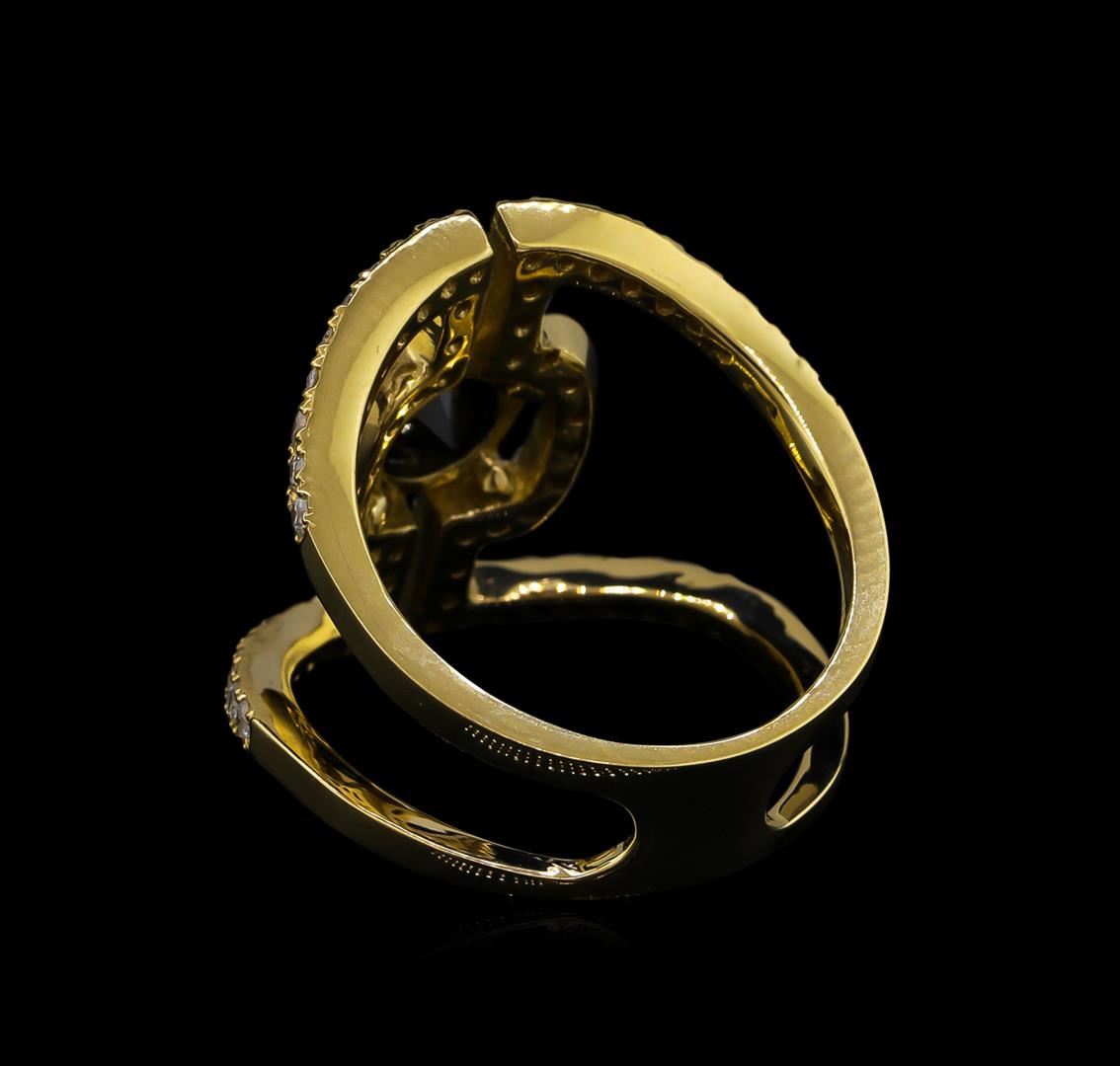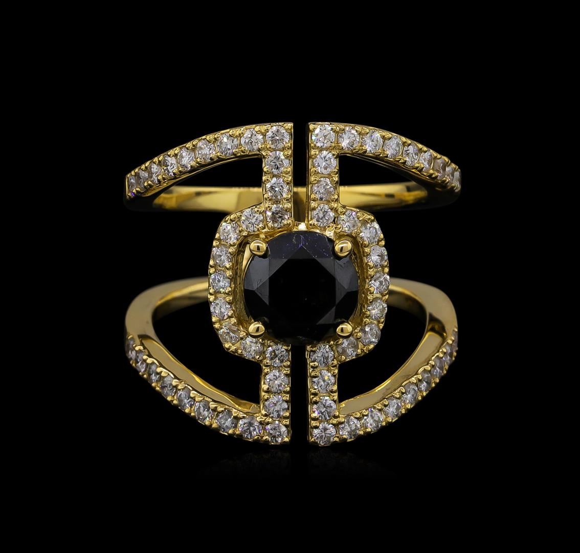 One ring featuring: 14KT yellow gold weighing 6.27 grams containing one black diamond with a total weight of 1.65ct and side diamonds with a total weight of 0.75ct.