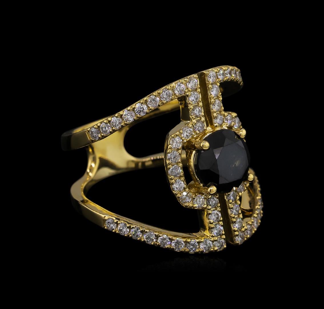 One ring featuring: 14KT yellow gold weighing 6.27 grams containing one black diamond with a total weight of 1.65ct and side diamonds with a total weight of 0.75ct.