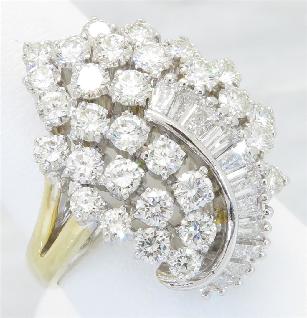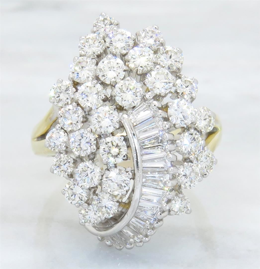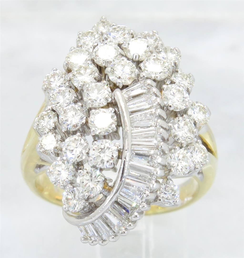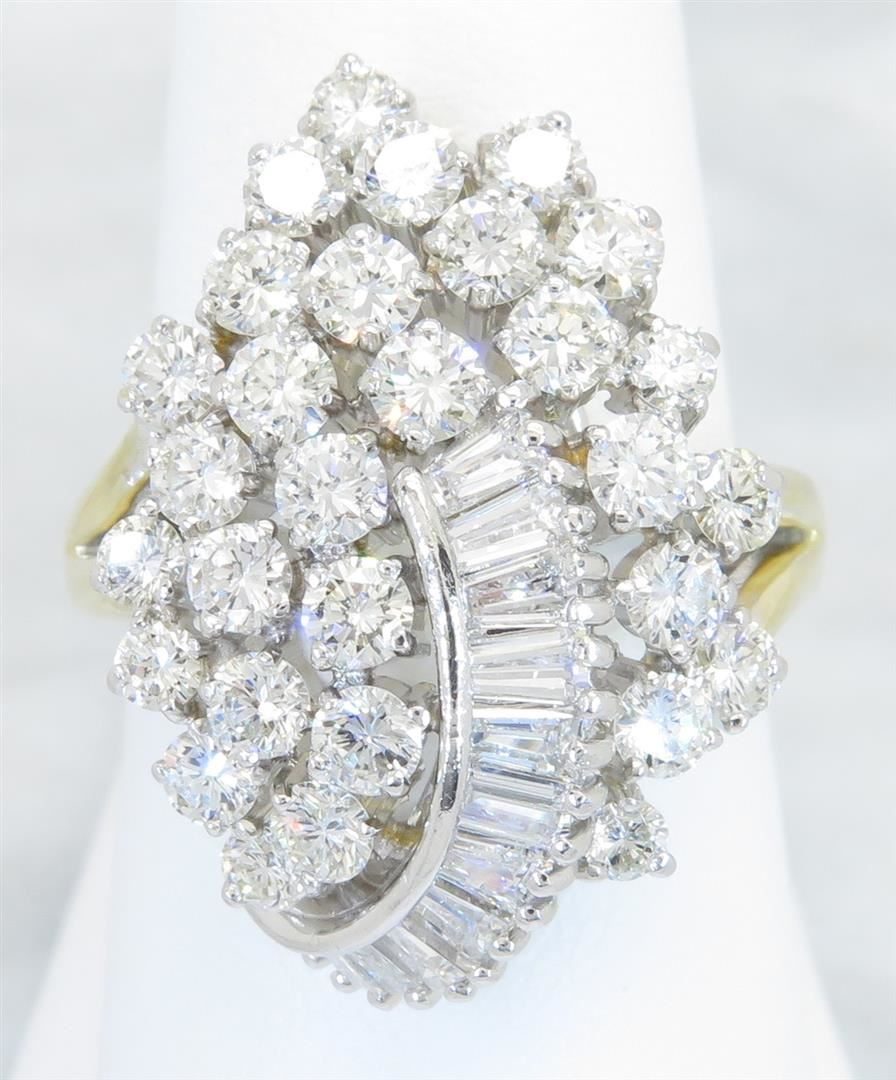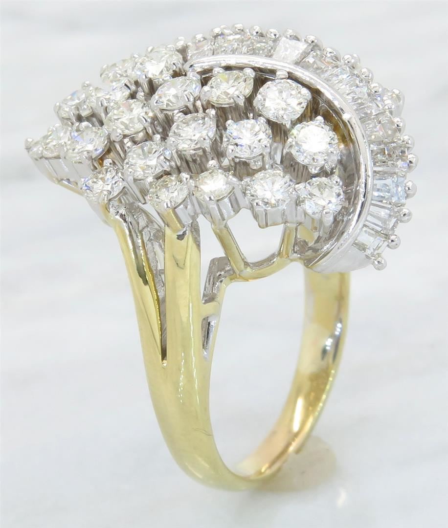 One tested 14K yellow gold diamond ring. Containing: 30 Round Brilliant Cut Diamonds. Clarity: VS-SI, Color: F-H. Approximate total diamond weight: 2.40CTW. Diamonds are graded in the mounting, unless otherwise stated. Weight of ring: 10.5 grams. Size: 6.5.