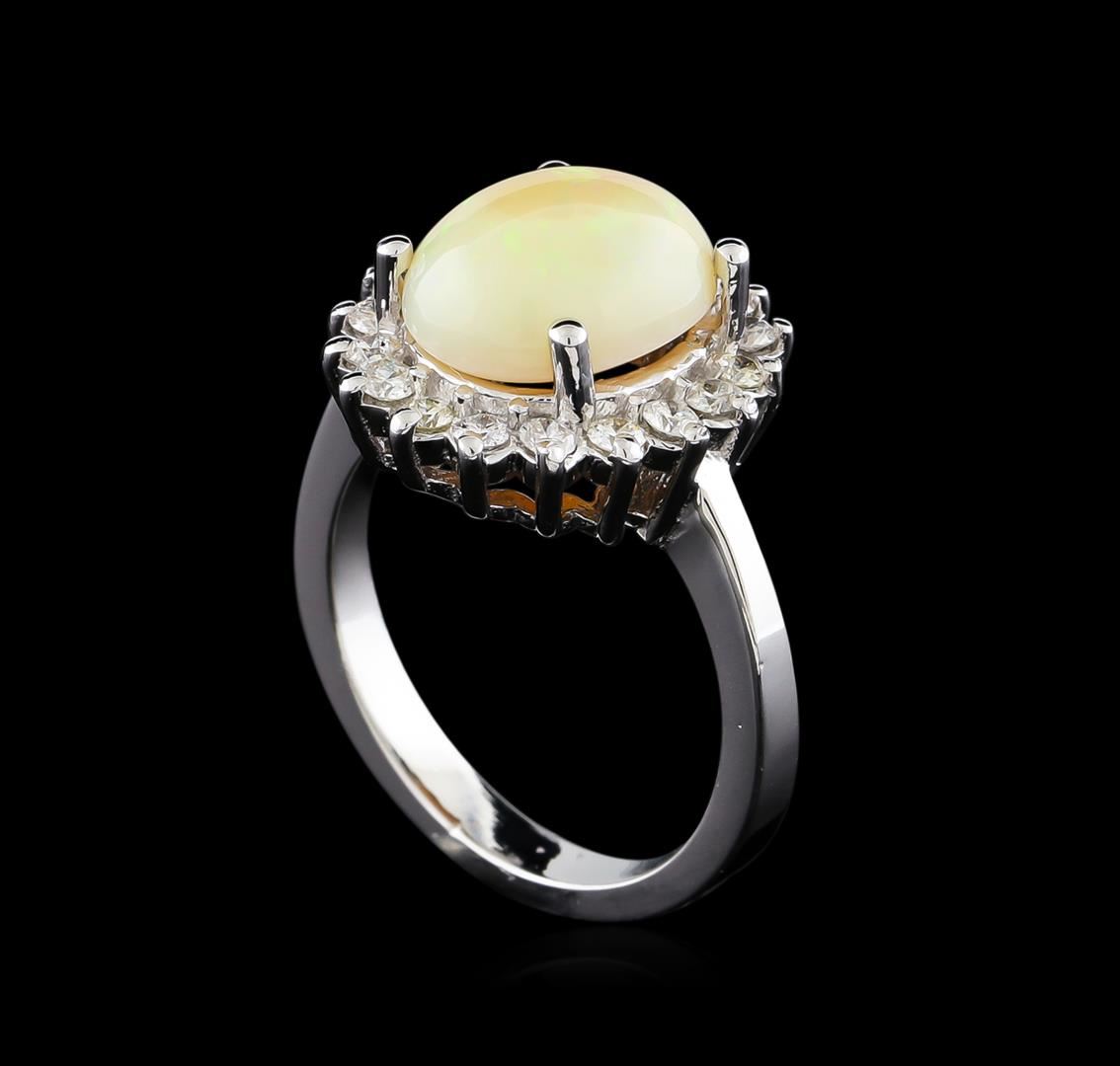 One ring featuring: 14KT white gold weighing 5.40 grams containing one opal with a total weight of 2.40ct and side diamonds with a total weight of 0.52ct.