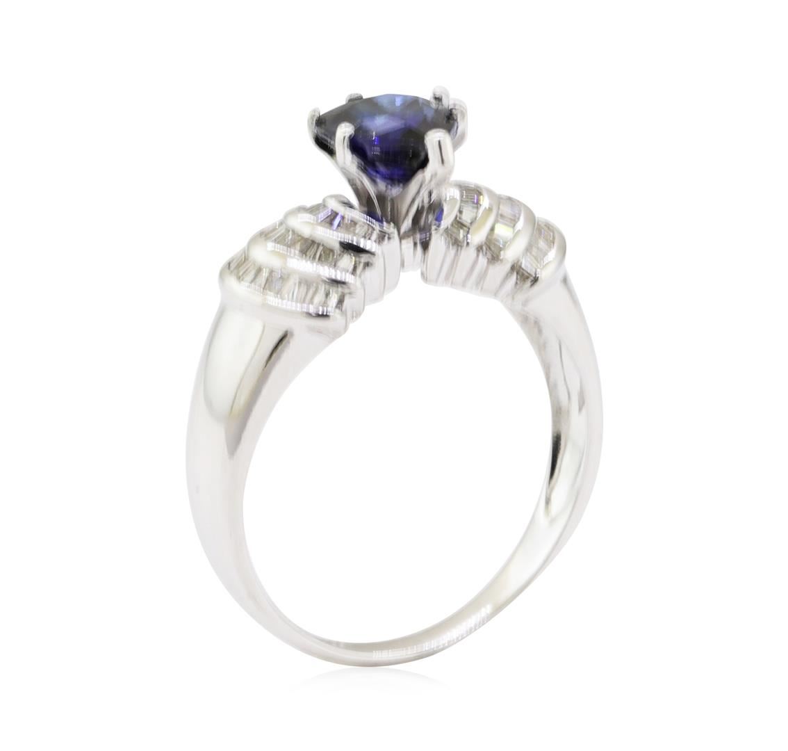 One electronically tested 18KT white gold lady's combination cast & assembled fashion ring with a tapered cathedral shank with a bright polish finish. The featured lady's ring has diamond set half dome shoulders and a shank measuring 2.30 millimeters wide