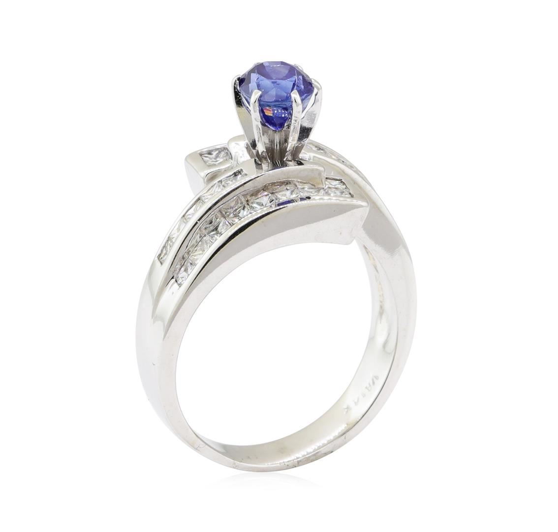 One electronically tested 14KT white gold lady's combination cast & assembled fashion ring with a bypass shank with a bright polish finish. The featured lady's ring has a shank measuring 2.80 millimeters wide. Identified with markings of '14K'. Condition