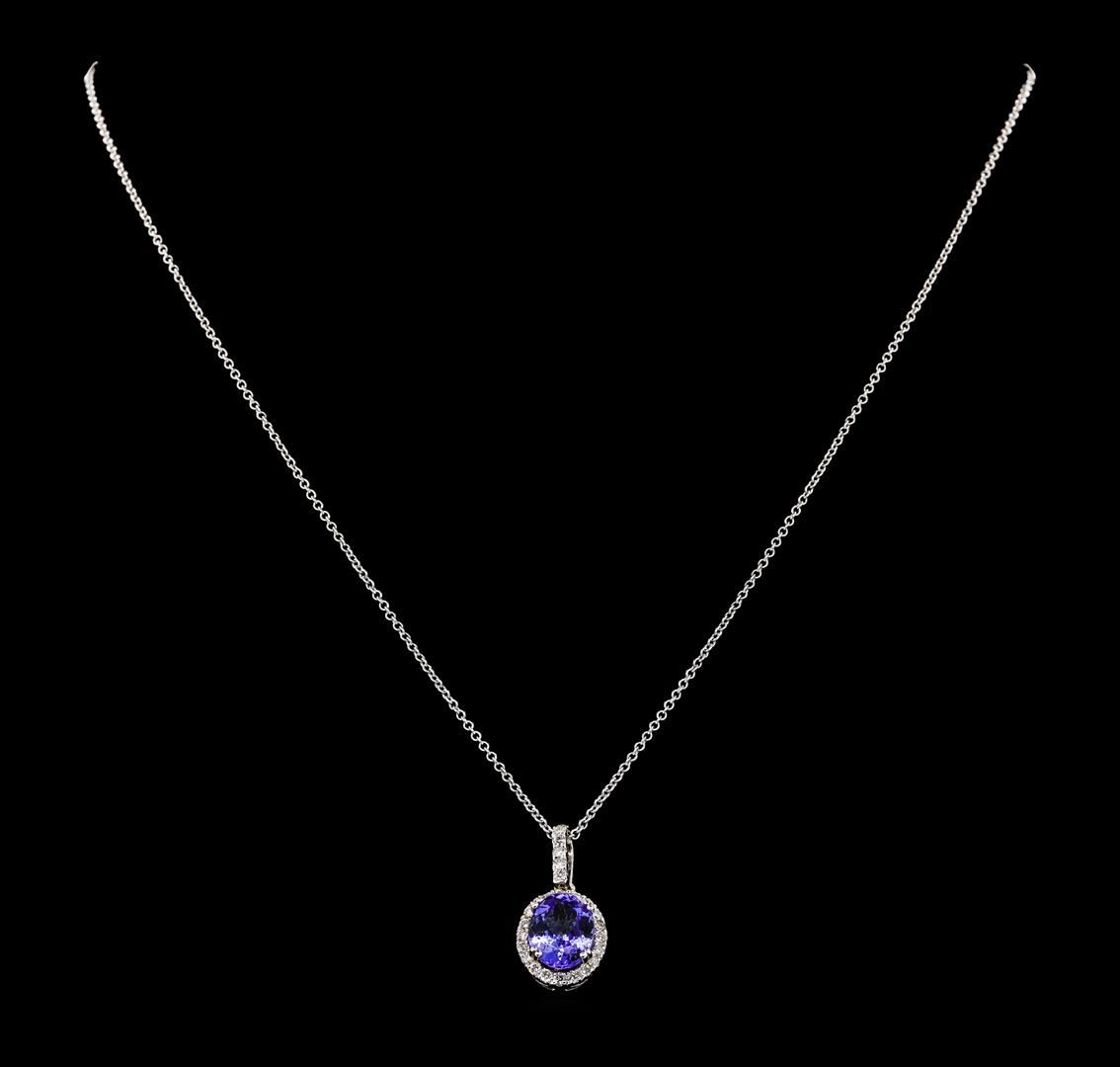 One Tanzanite and Diamond Pendant with Chain including: 14KT White Gold weighing a total of 1.75 grams, Tanzanite weighing a total of 2.42ct, and 26 Diamonds weighing a total of 0.31ctw.