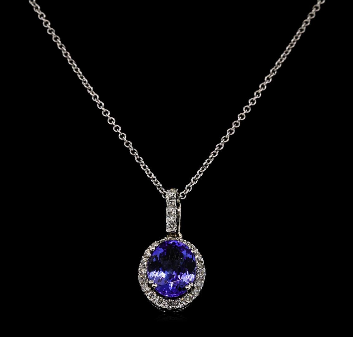 One Tanzanite and Diamond Pendant with Chain including: 14KT White Gold weighing a total of 1.75 grams, Tanzanite weighing a total of 2.42ct, and 26 Diamonds weighing a total of 0.31ctw.