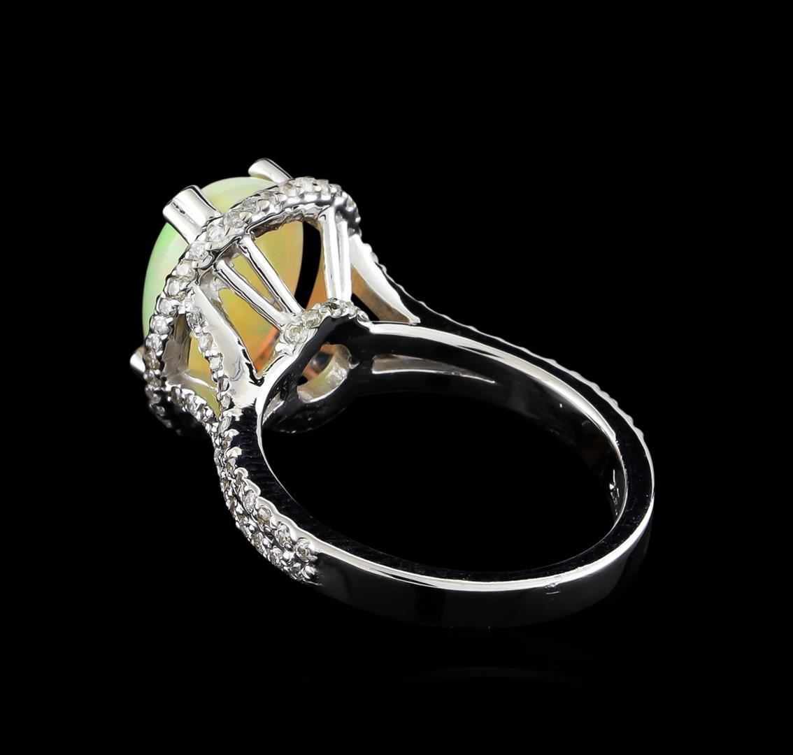 One ring featuring: 14KT white gold weighing 5.83 grams containing one opal with a total weight of 2.43ct and side diamonds with a total weight of 0.65ct.