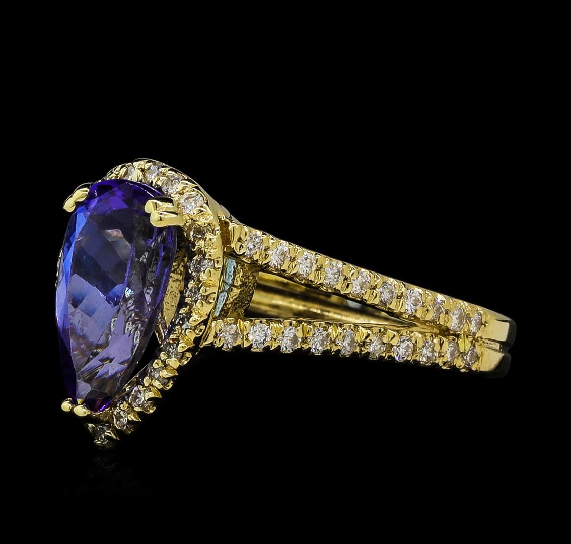 One Tanzanite and Diamond Ring including: 14KT Yellow Gold with a total weight of 4.8 grams; Tanzanite with a total weight of 2.43 ct and Diamonds with a total weight of 0.47 ctw.
