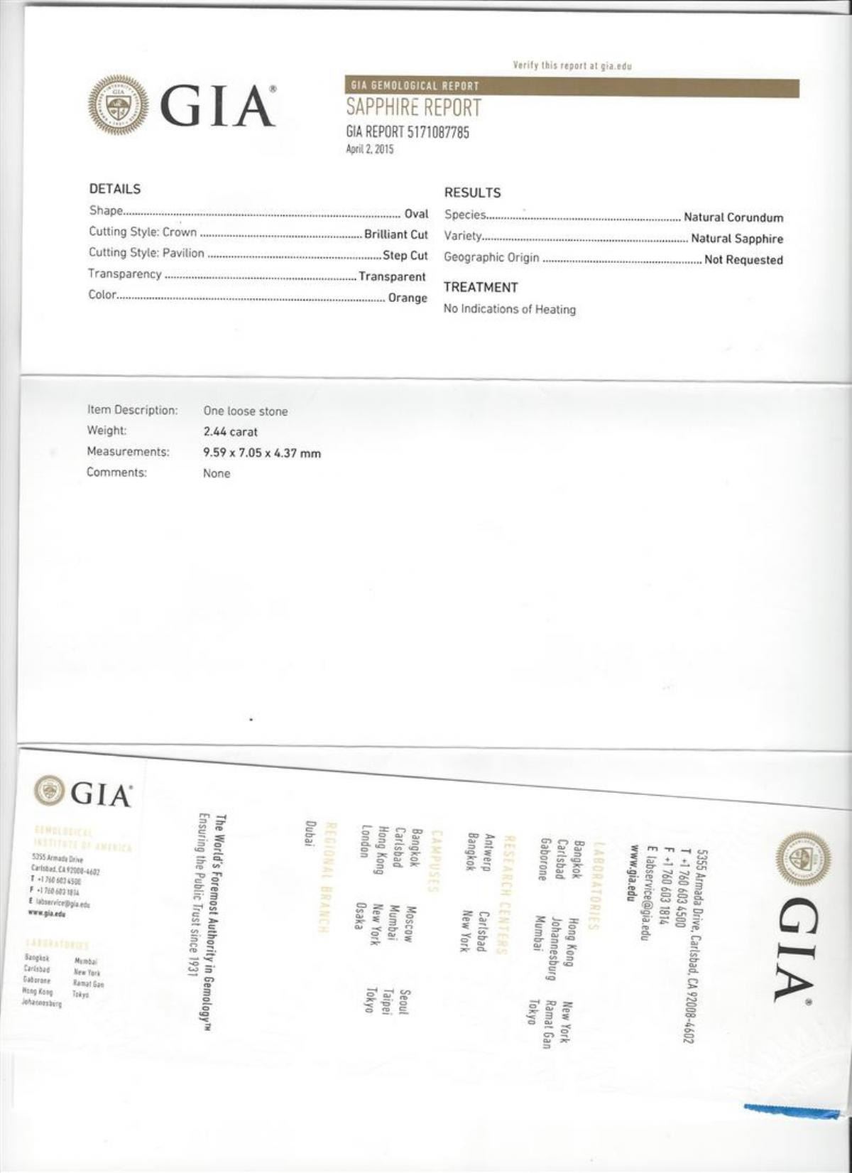 One 2.44ct Sapphire and Diamond Ring - 18KT White Gold. AIG certified. See Appraisal for more details. AIG Appraised.