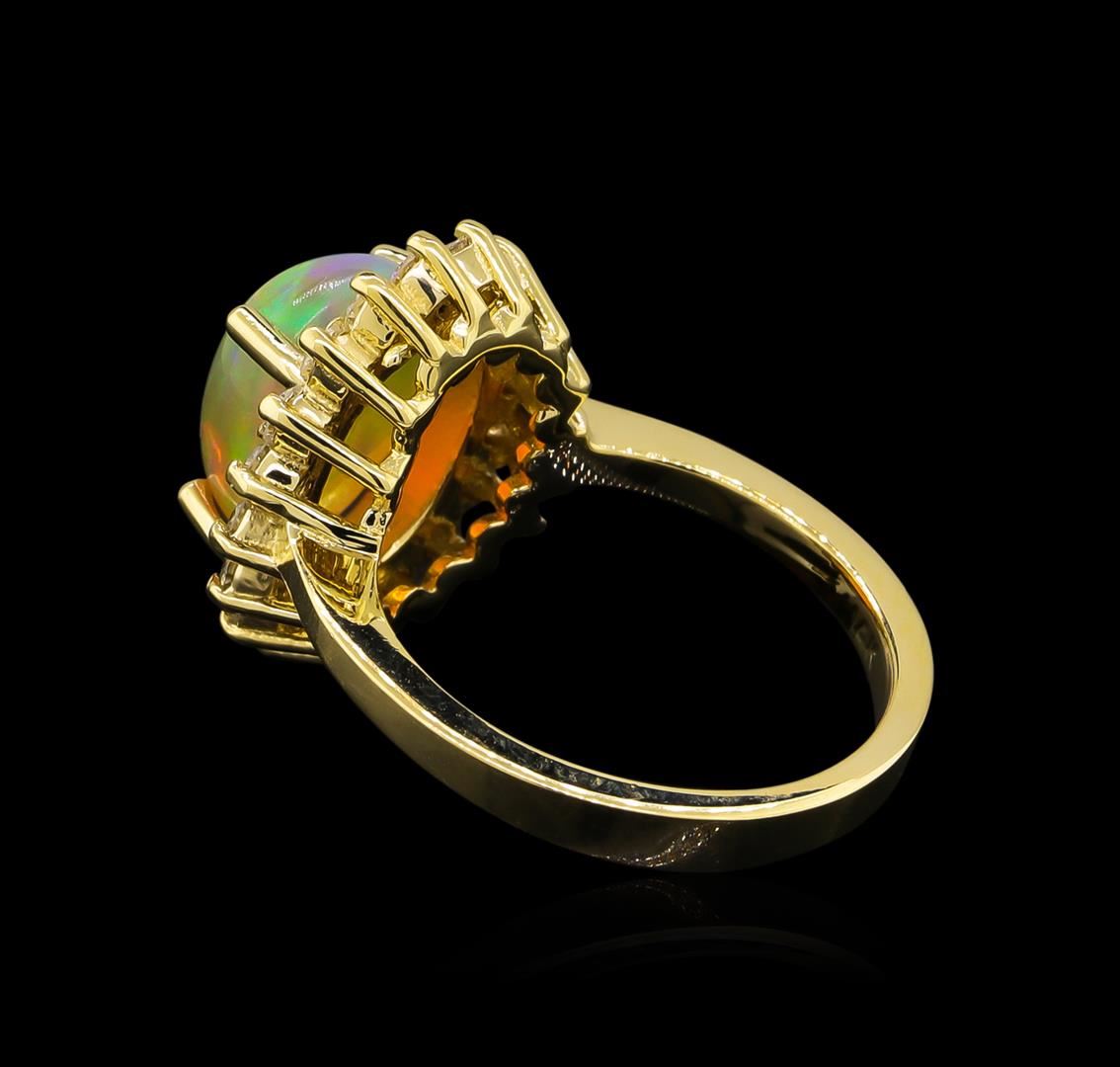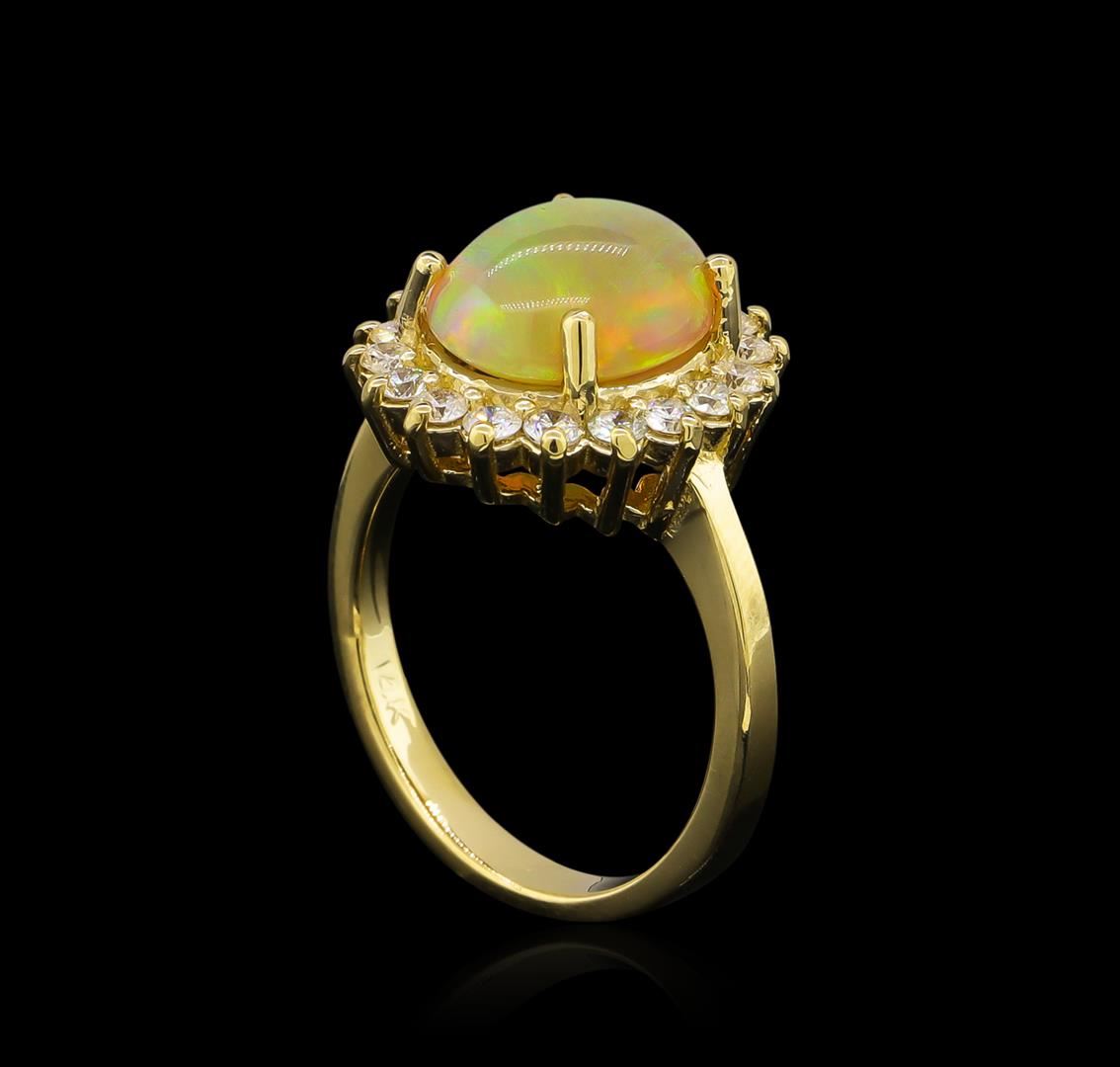 One ring featuring: 14KT yellow gold weighing 5.42 grams containing one opal with a total weight of 2.45ct and side diamonds with a total weight of 0.61ct.