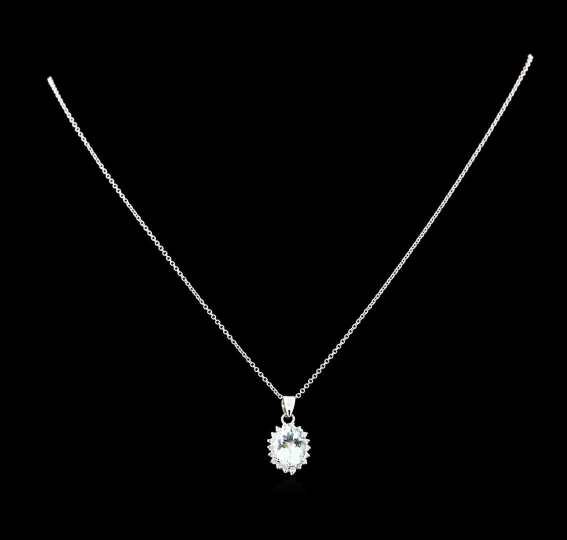 One Pendant With Chain featuring: 14KT White Gold weighing 2.3 grams containing one Aquamarine center stone with a total weight of 2.48ct and Diamonds with a total weight of 0.25ct.
