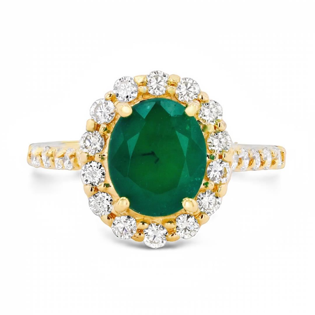 2.48 ctw Emerald and 0.78 ctw Diamond 18K Yellow Diamond Ring