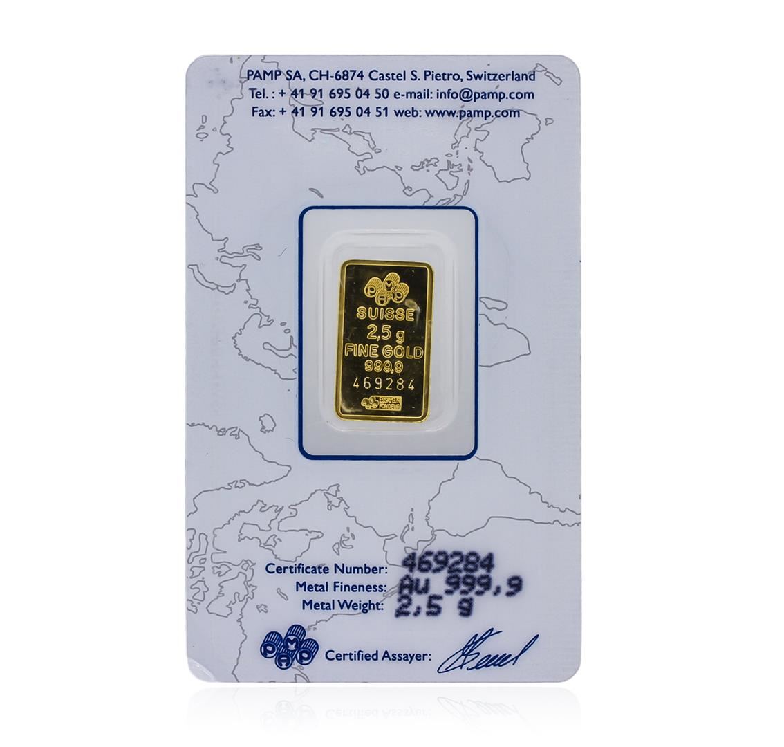 One 2.5 Gram Gold Bar - Pamp Suisse Lady Fortuna 999.9 Fine Gold.
