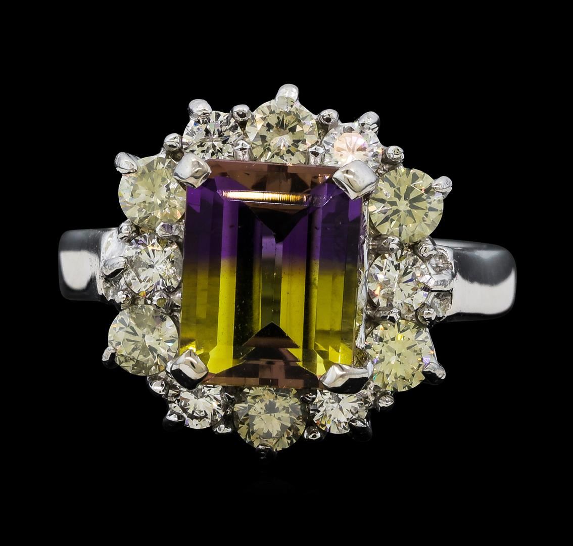 One Ametrine Quartz and Diamond Ring including: 14KT White Gold weighing a total of 6.61 grams, Ametrine Quartz weighing a total of 2.50ct and 12 Diamonds weighing a total of 1.08ctw.
