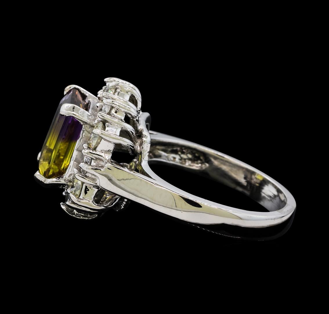 One Ametrine Quartz and Diamond Ring including: 14KT White Gold weighing a total of 6.61 grams, Ametrine Quartz weighing a total of 2.50 ct and 12 Diamonds weighing a total of 1.08ctw.