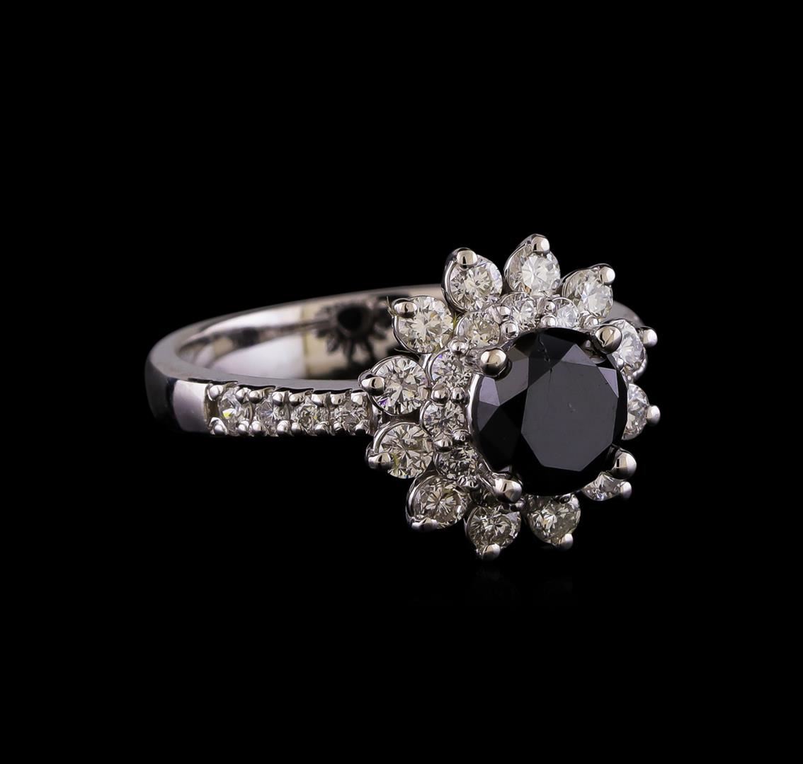 One ring : 14KT white gold weighing 4.06gm containing one black diamond center stone with a total weight of 1.60ct. and diamonds weighing 0.9ctw.