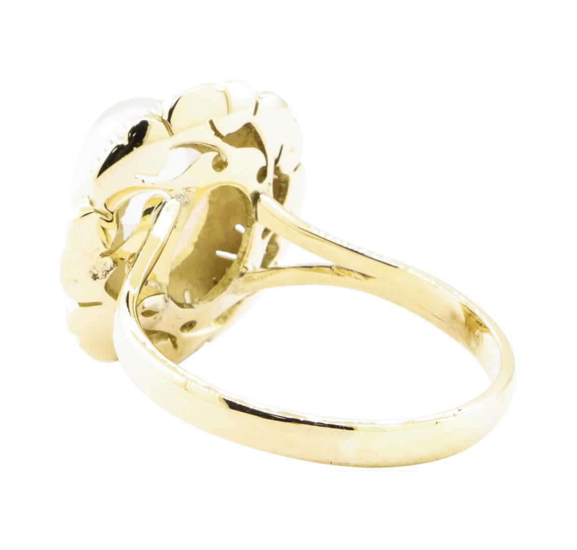 One ring featuring: 14KT yellow gold weighing 6.0 grams containing one oval cabochon crystal opal weighing 2.50 ct.