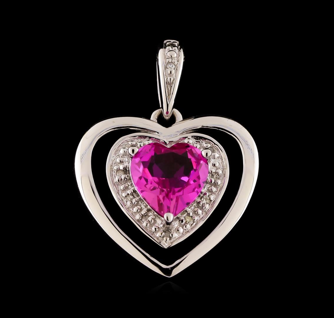 One heart shaped pendant featuring: 10KT white gold weighing 4.10 grams containing one heart shaped rubellite center weighing 2.50ct and diamonds weighing 0.10ctw.