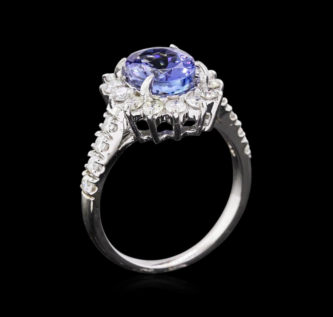 One ring featuring: 14KT white gold weighing 4.16 grams containing one tanzanite with a total weight of 2.50 ct and diamonds with a total weight of 0.78ct.