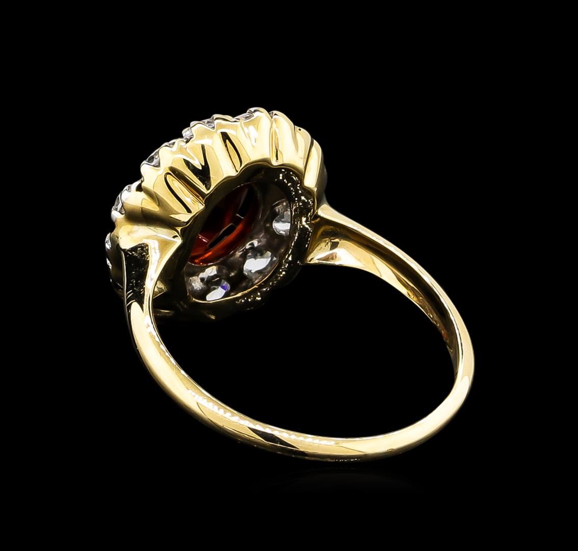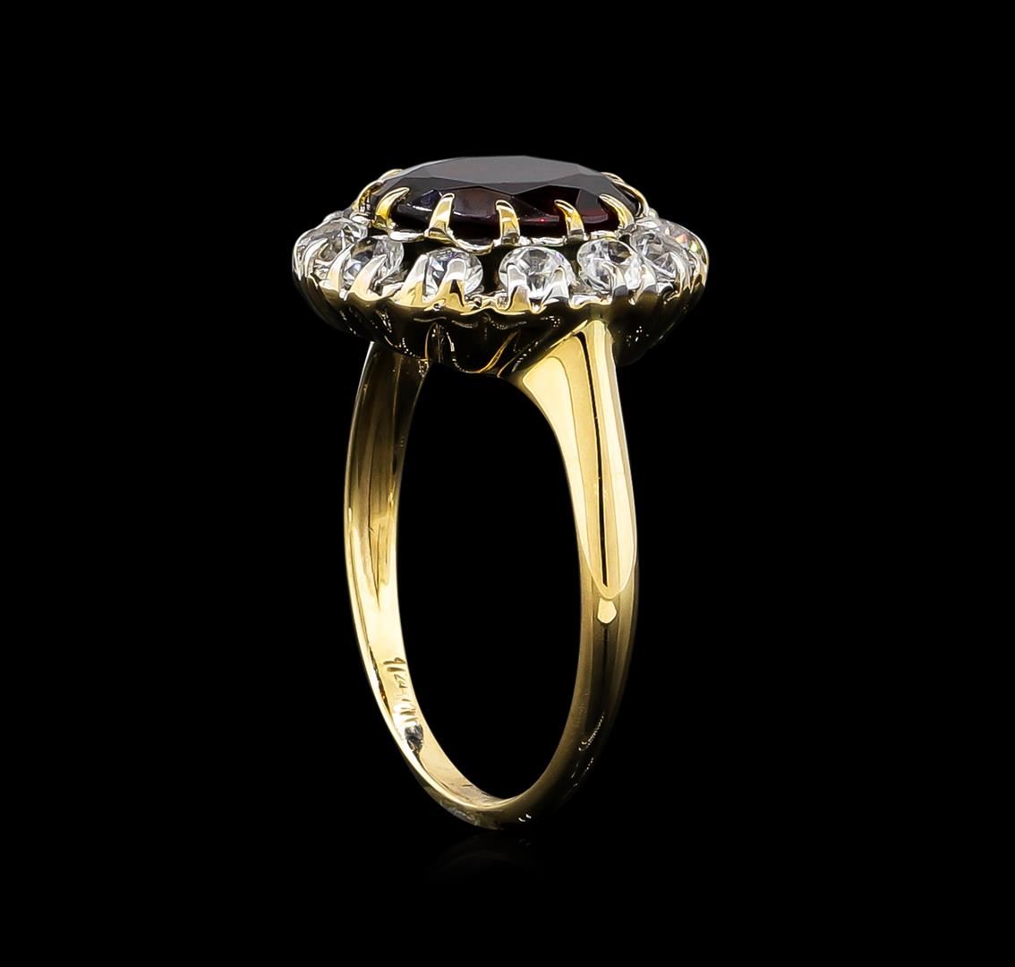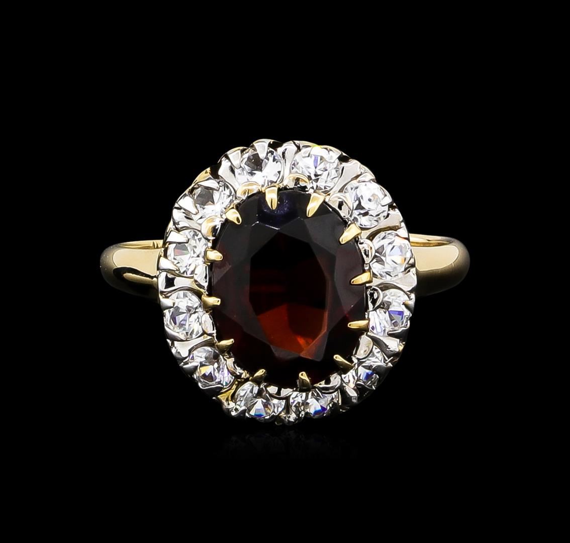 One ring featuring: 14KT yellow gold weighing 3.03 grams containing one garnet with a total weight of 2.50ct and white sapphires with a total weight of 0.84ct.