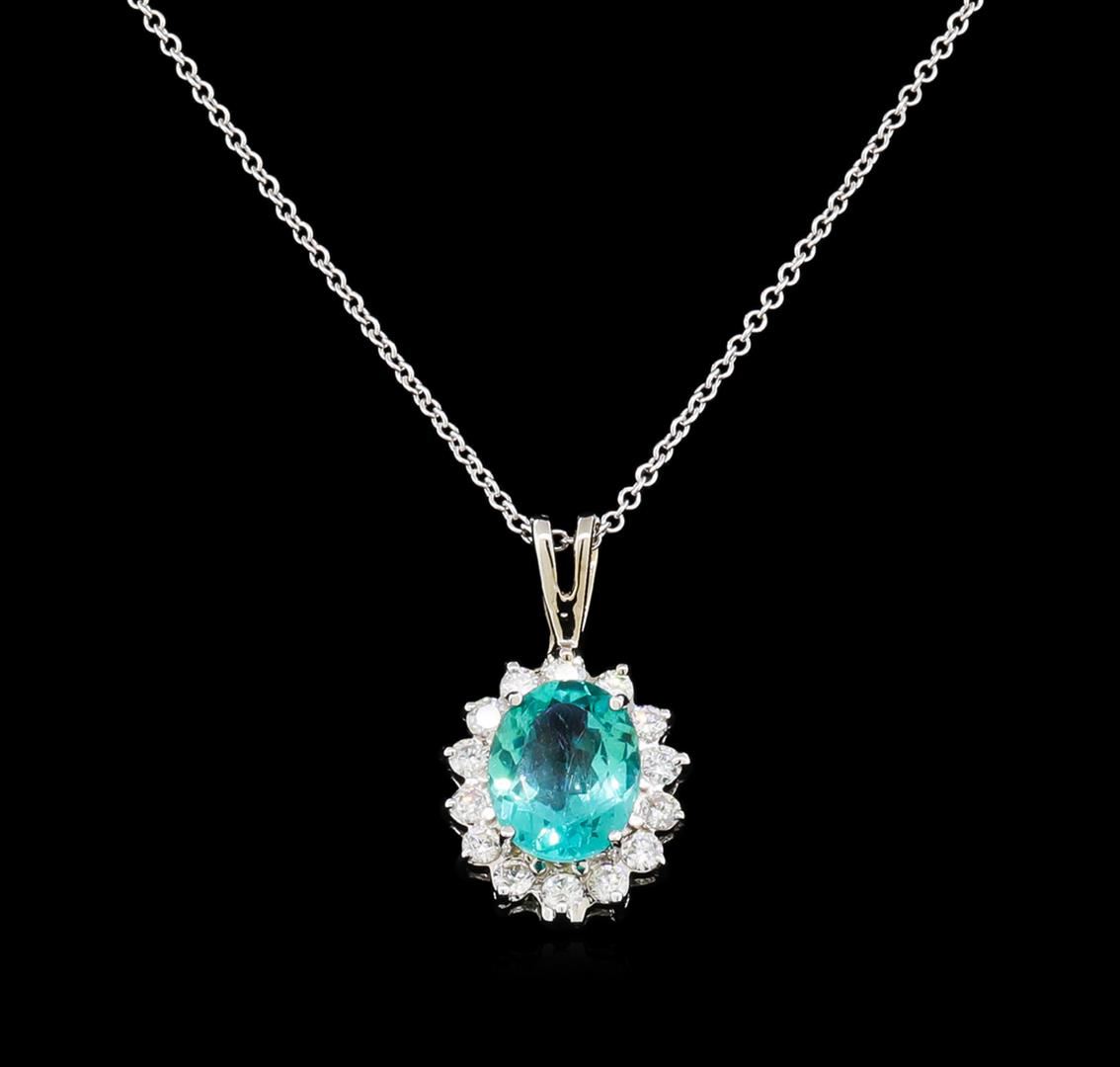 One pendant with chain featuring: 14KT white gold weighing 2.50 grams containing one apatite with a total weight of 2.52ct and diamonds with a total weight of 0.55ct.