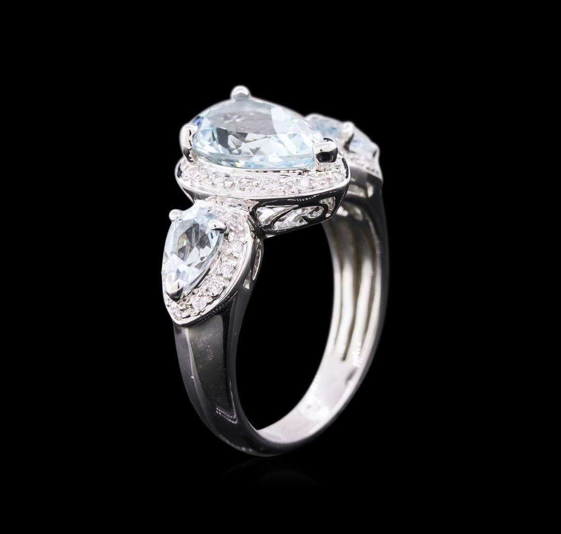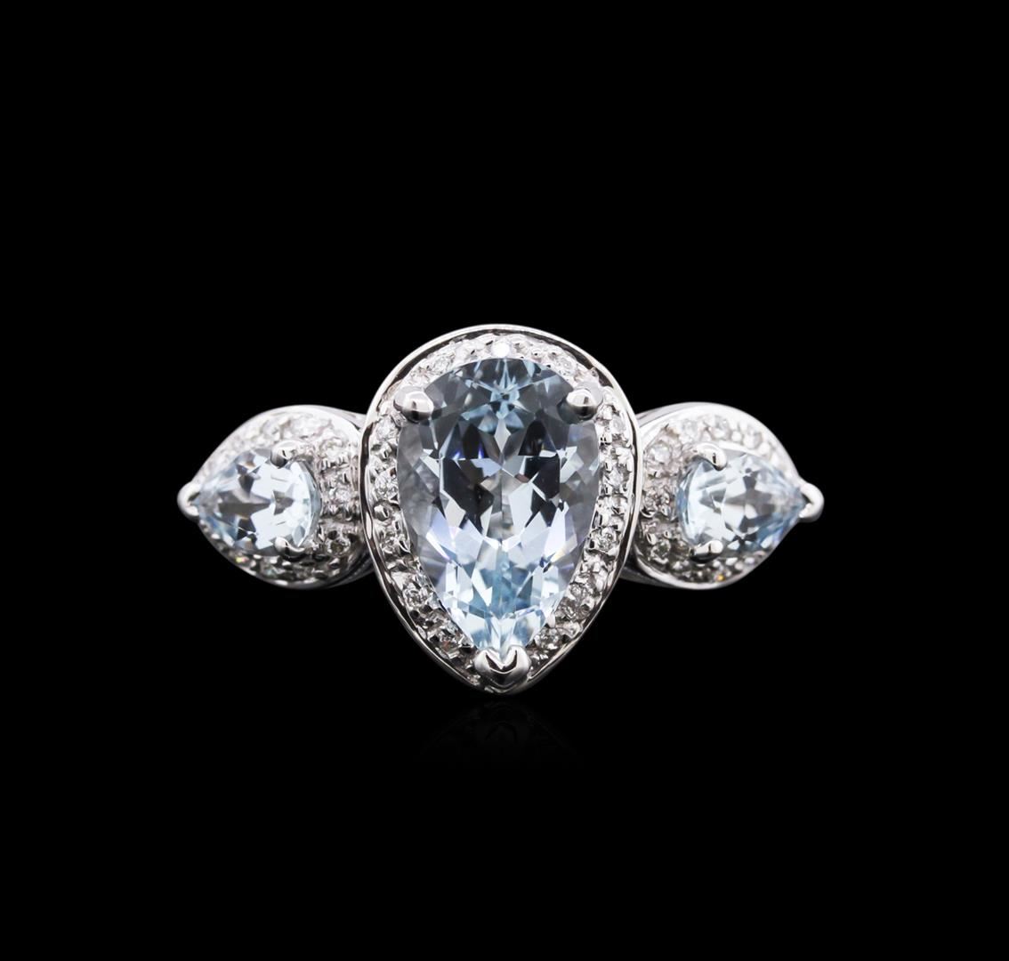 One ring featuring: 18KT white gold weighing 3.70 grams containing three aquamarines with a total weight of 2.54ct and 38 brilliant cut diamonds with a total weight of 0.14ct.