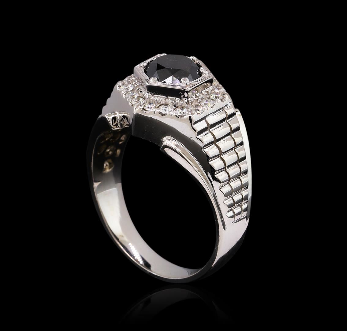 One ring featuring: 14KT gold weighing 11.30 grams containing one black diamond with a total weight of 2.10ct and side diamonds with a total weight of 0.45ct.