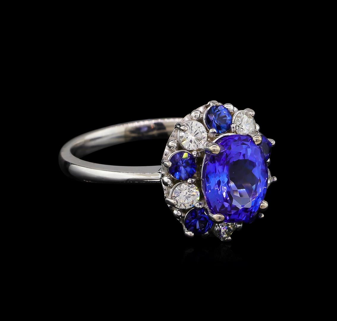 One ring featuring: 14KT white gold weighing 3.80 grams containing one tanzanite with a total weight of 2.55ct and 5 blue sapphires with a total weight of 0.55ct and side diamonds with a total weight of 0.38ct.