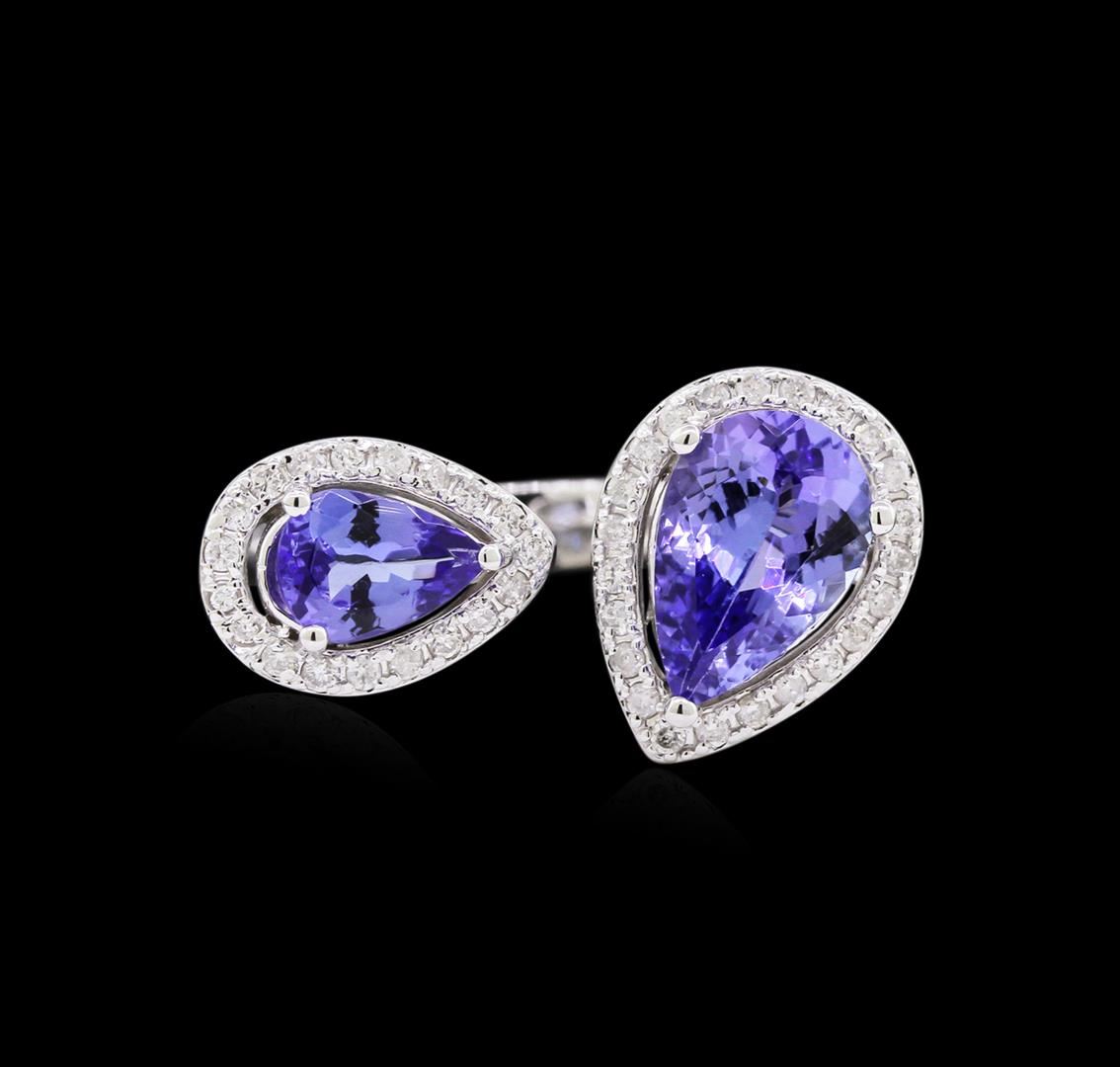 One ring featuring: 14KT white gold weighing 4.04 grams containing 2 tanzanite with a total weight of 2.55ct and diamonds with a total weight of 0.30ct.