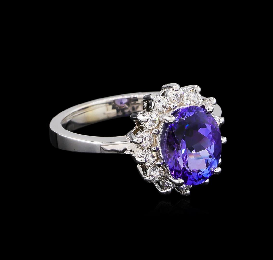 One ring featuring: 14KT white gold weighing 4.23 grams containing one tanzanite with a total weight of 2.55ct and side diamonds with a total weight of 0.35ct.