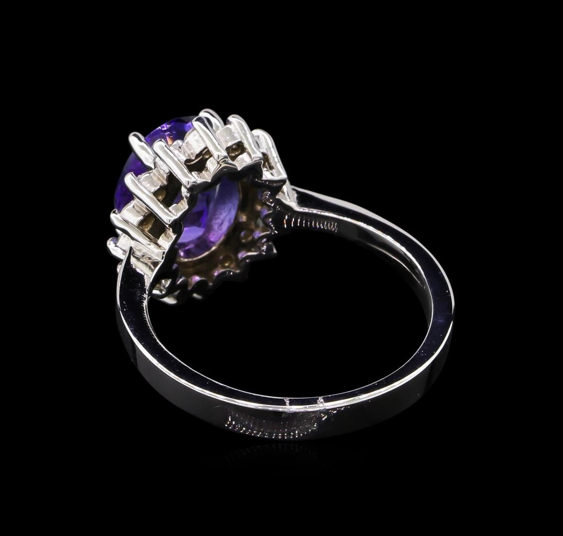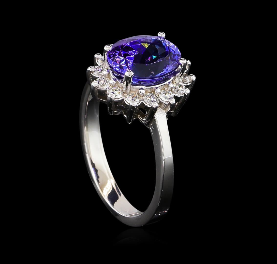 One ring featuring: 14KT white gold weighing 4.23 grams containing one tanzanite with a total weight of 2.55ct and side diamonds with a total weight of 0.35ct.