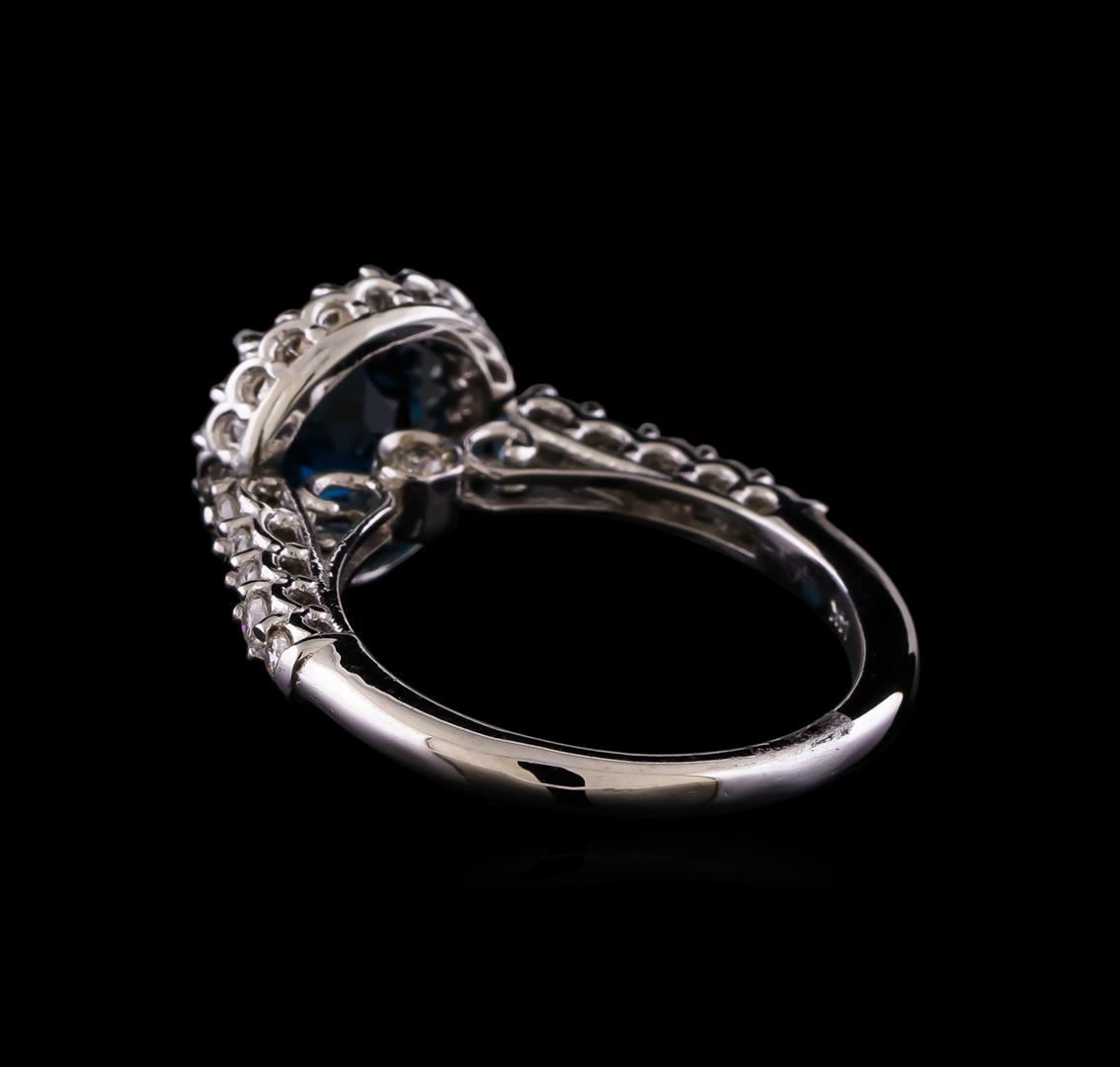 One ring : 14KT white gold weighing 4.35gm containing one london blue topaz center stone with a total weight of 2.56ct. and side diamonds weighing 0.52ctw.