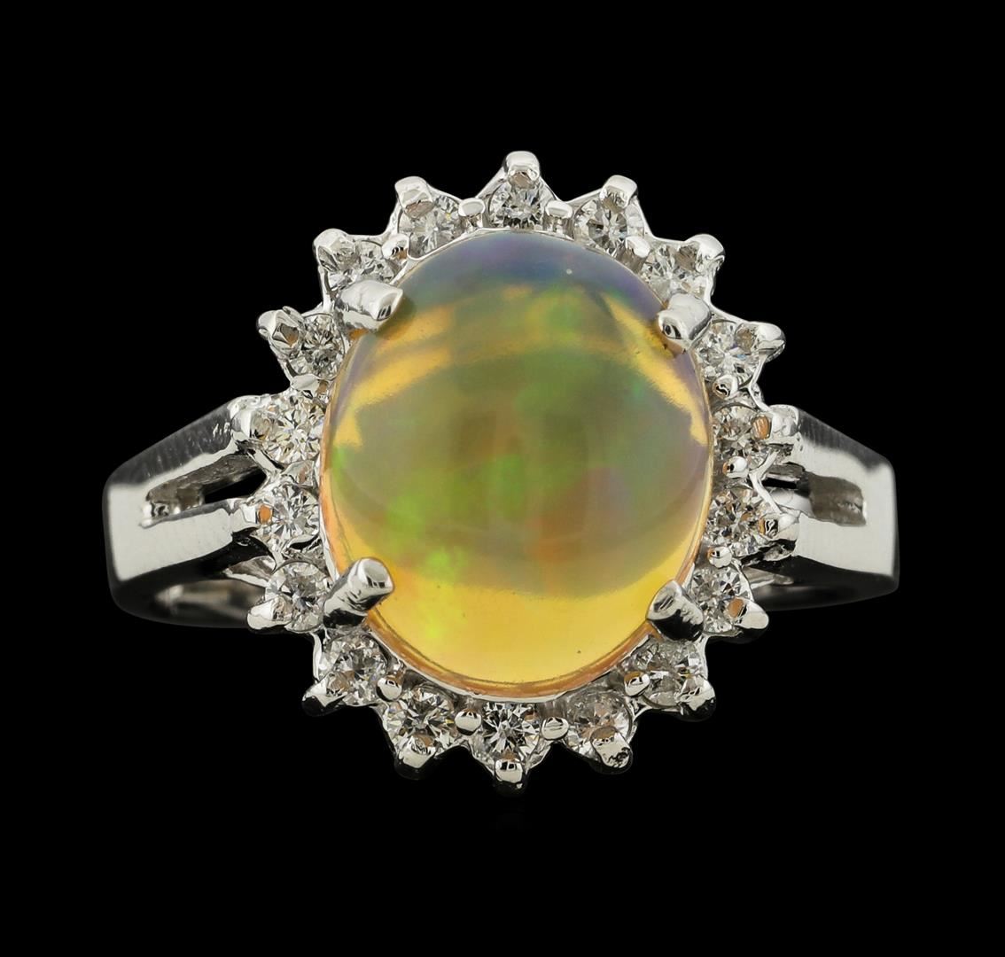 One ring : 14KT white gold weighing 4.80gm containing opal with a total weight of 2.58ct and diamonds weighing 0.30ctw.