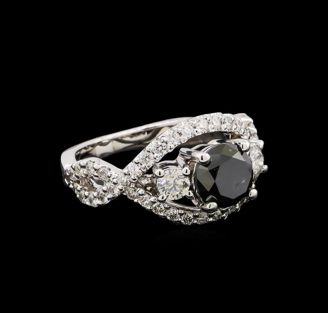 One electronically tested 14KT white gold lady's cast fashion ring with a split crossover shank with a bright polish finish. The featured lady's ring has a shank measuring 2.24 millimeters wide. Identified with markings of '14K'. Condition is new, good workmanship. Containing: One prong set round brilliant cut diamond, measuring 6.90 - 6.85 x 4.71mm (depth est.) , 5.00.%. GTCF approximate weight of 1.60ct. Colored gemstones are presumed to have been subjected to commonly used enhancement processes. Graded in the setting. Cut Good Two prong set round brilliant cut diamonds, measuring 3.50 - 3.40 x 2.14mm (depth est.) approximate total weight of 2 Stones = 0.32ct. Graded in the setting. Clarity SI-1 to SI-2. Color: H - I Cut Good Forty-Six prong set round brilliant cut diamonds, measuring 1.60 - 1.55 x 0.98mm (depth est.) approximate total weight of 46 Stones = 0.68ct. Graded in the setting. Clarity SI-1 to I-1. Color: G - I Cut Good. Total Weight of Diamonds 2.60ct.. Total Weight of Ring 5.70gm. GAS Appraised at $5,050.00.