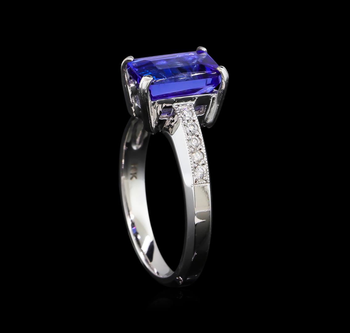 One ring featuring: 14KT white gold weighing 4.09 grams containing one tanzanite with a total weight of 2.61ct and side diamonds with a total weight of 0.15ct.