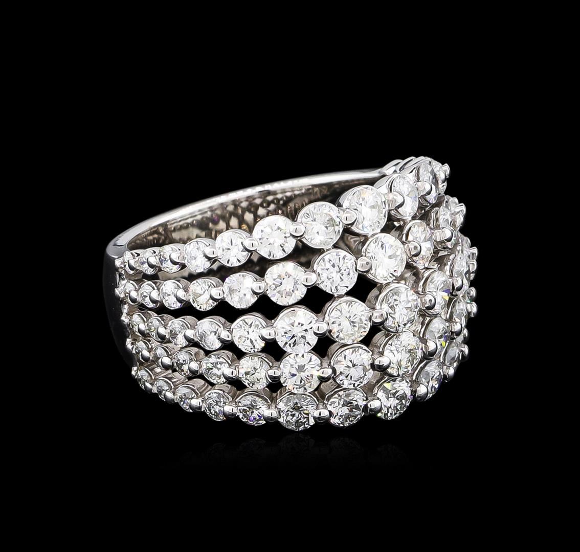 One electronically tested 14KT white gold lady's cast fashion ring with a five row split shank with a bright polish finish. The featured lady's ring has a wide domed band motif measuring 14.60 millimeters wide and a shank measuring 5.48 millimeters wide. Identified with markings of "14K". Condition is new, good workmanship. Containing: Twenty-Five prong set round brilliant cut diamonds, measuring 2.80 - 2.50 x 1.59mm (depth est.) approximate total weight of 25 Stones = 1.60ct. Graded in the setting. Clarity: SI-1 to I-1. Color: H - I. Cut Good Thirty prong set round brilliant cut diamonds, measuring 2.20 - 1.60 x 1.14mm (depth est.) approximate total weight of 30 Stones = 0.78ct. Graded in the setting. Clarity: SI-1 to I-1. Color: H - I. Cut Good Twenty prong set round brilliant cut diamonds, measuring 1.50 - 1.30 x 0.87mm (depth est.) approximate total weight of 20 Stones = 0.23ct. Graded in the setting. Clarity: SI-1 to I-1. Color: H - I. Cut Good. Total Weight of Diamonds 2.61ct. Total Weight of Ring 8.50gm. GAS Appraised at $7,600.00.