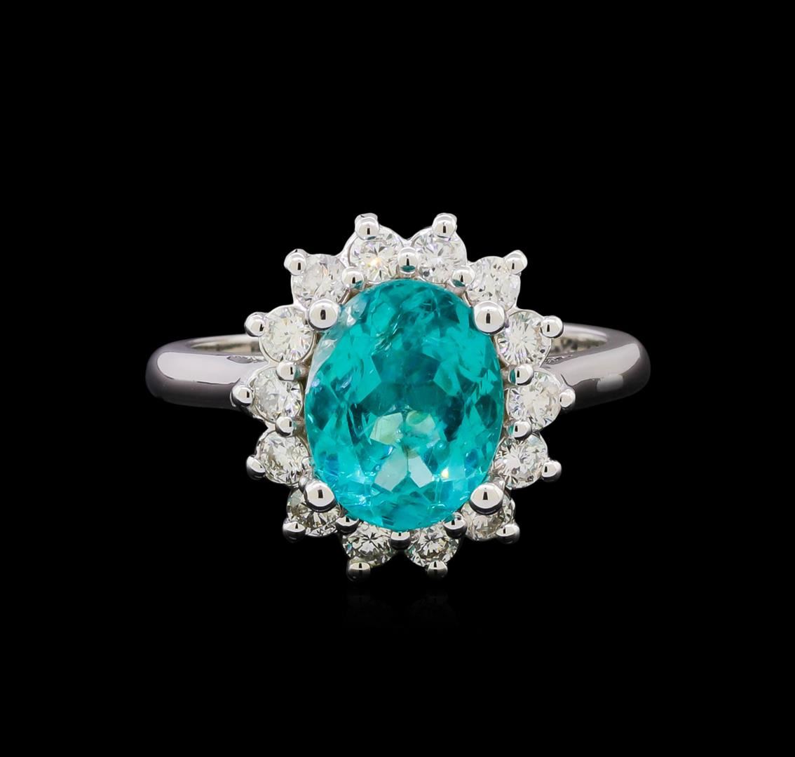 One ring featuring: 14KT white gold weighing 4.75 grams containing one apatite center stone with a total weight of 2.63ct and diamonds with a total weight of 0.62ct.