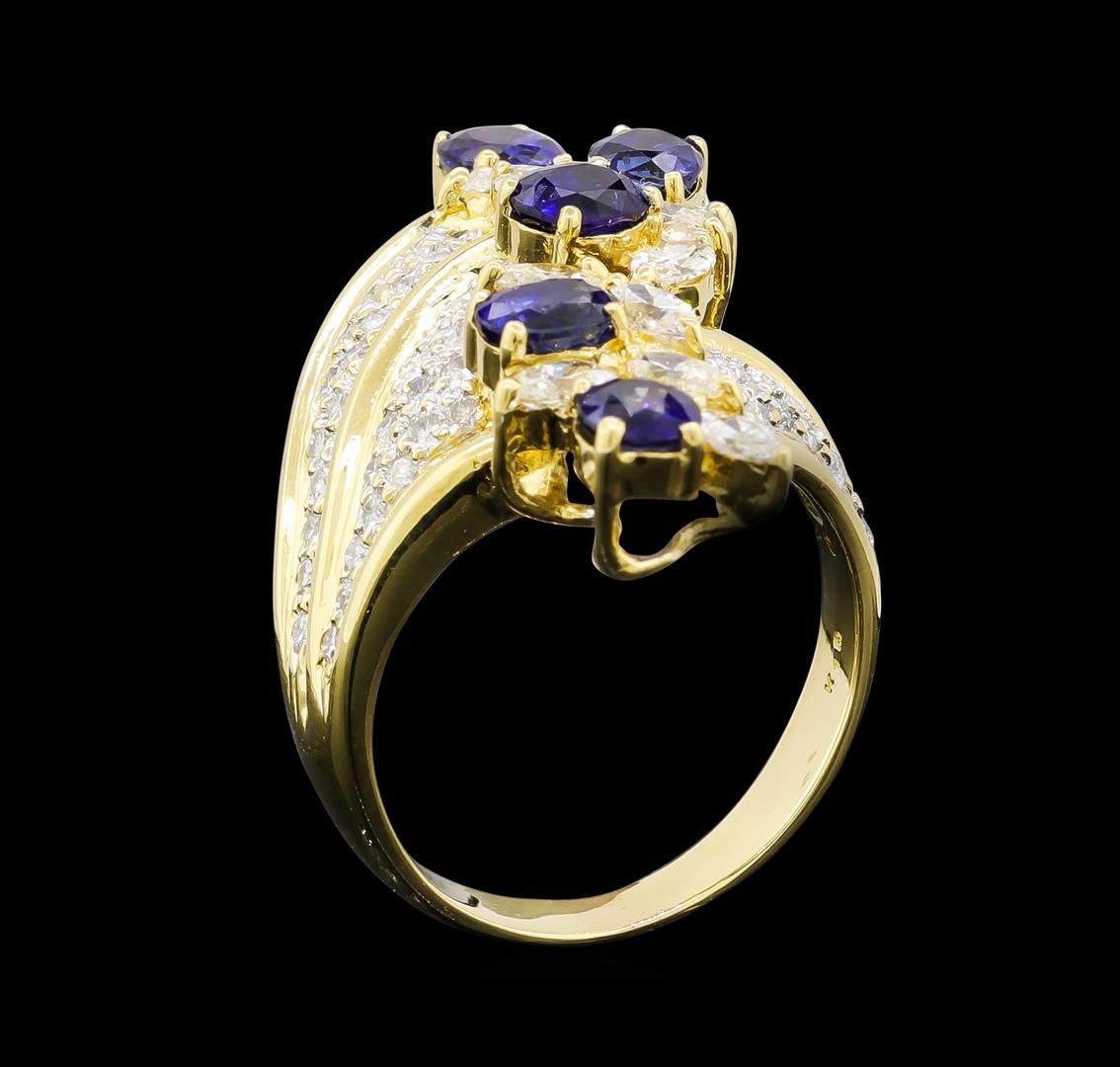 One ring featuring: 18KT Yellow Gold containing Sapphire with a total weight of 2.63ct and Diamonds with a total weight of 1.59ct. Total Weight of Ring: 10.2 grams.